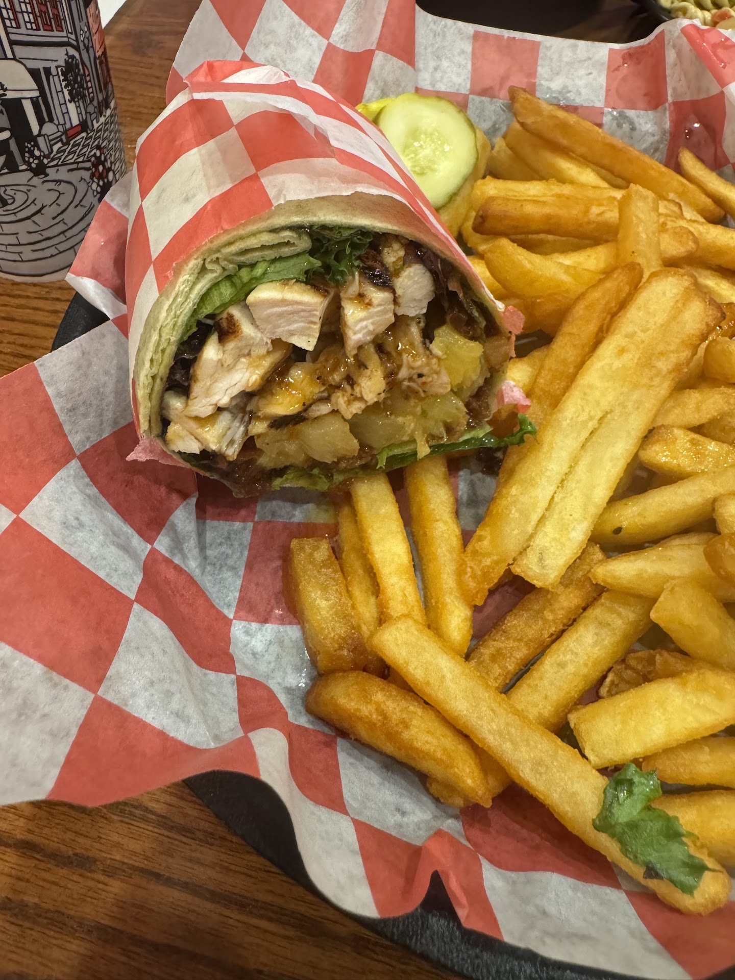 Ā Ā Ā Read moreWent in thinking I was here for another usual pizzeria with some mediocre food but I was proven wrong today! That General Tsos grilled chicken wrap might have to be added to the weekly rotation of foods. The grilled chicken was juicy and super flavorful and the the veggie in the wrap went super well with everything. Was surprised but delighted to bite into those bacon pieces that brought the wrap together and gave it that extra salty bite. That General Tsos sauce was what brought the wrap home for me. Very light and done well that I had to go get me a cup with some sauce for my fries. The french fries were probably one of the best I've had in the area!!! Cooked to perfection, crunchy and airy. The service was a bit lacking but it could have been from the hostee being a new hire and finding the lunch specials were a bit confusing as they were positioned in a weird spot and in...