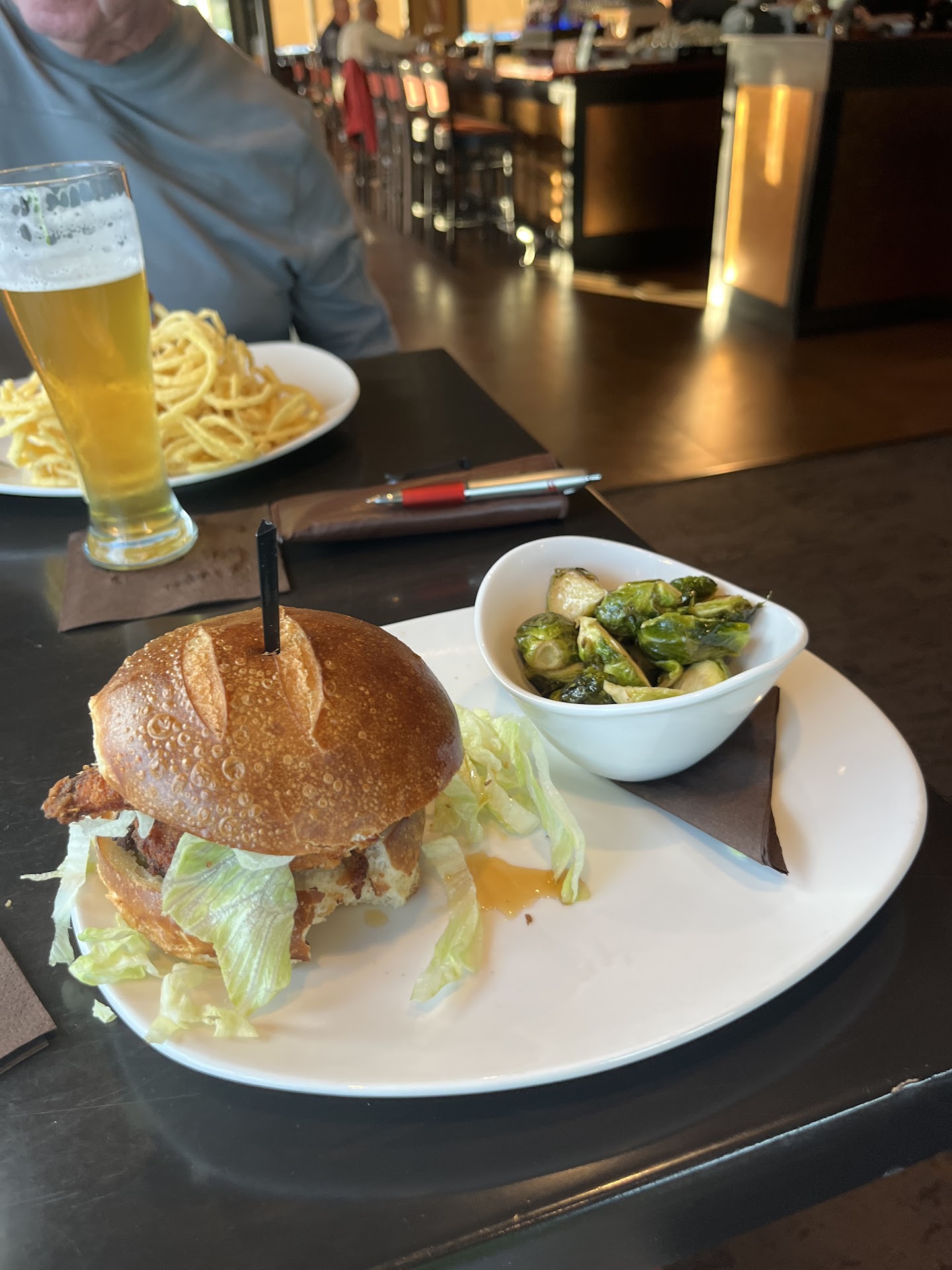 Read moreSecond time eating here. Great atmosphere, including a really nice patio that is especially suitable for larger parties. Unfortunately, it was chilly when we went, so we sat inside, which was spacious and seemed even more so based on the early hour at which we arrived. My parents enjoyed their libations; I just drank water like a simple Puritan. My mom loved her salmon, which was cooked in a refined Thai chili sauce. My stepdad and I got hot honey chicken. I enjoyed it more than he did. The breading was done just right and the chicken was mostly tender but indubitably it was missing a sauce, rendering the taste a bit dry. At a fraction of the cost, a Popeye's chicken sandwich is markedly better, as it seemingly melts in your mouth, plus it has that kick if you ask for it. Moreover, the mayo or whatever you put on the bread at Popeye's keep it from getting too dry. My stepdad asked for ketchup and got a dixie-cup sized cup like we at the Four Seasons, all for a sizable chicken sandwich and some onion strings. Portions were large enough that I got leftovers, which are probably better because I have a whole bottle of ketchup in my fridge and not just a tiny little cup. Seriously, if 110 grill makes a house sauce for that sandwich, they are in business. Otherwise, I would look to the pulled pork options. They seem to be highly recommended and well-represented on the menu. Will definitely go back one day but I don't live down there and my parents just went back to Florida, so it'll be a while. Upon my return, I hope to learn of a new sauce for the chicken because the...