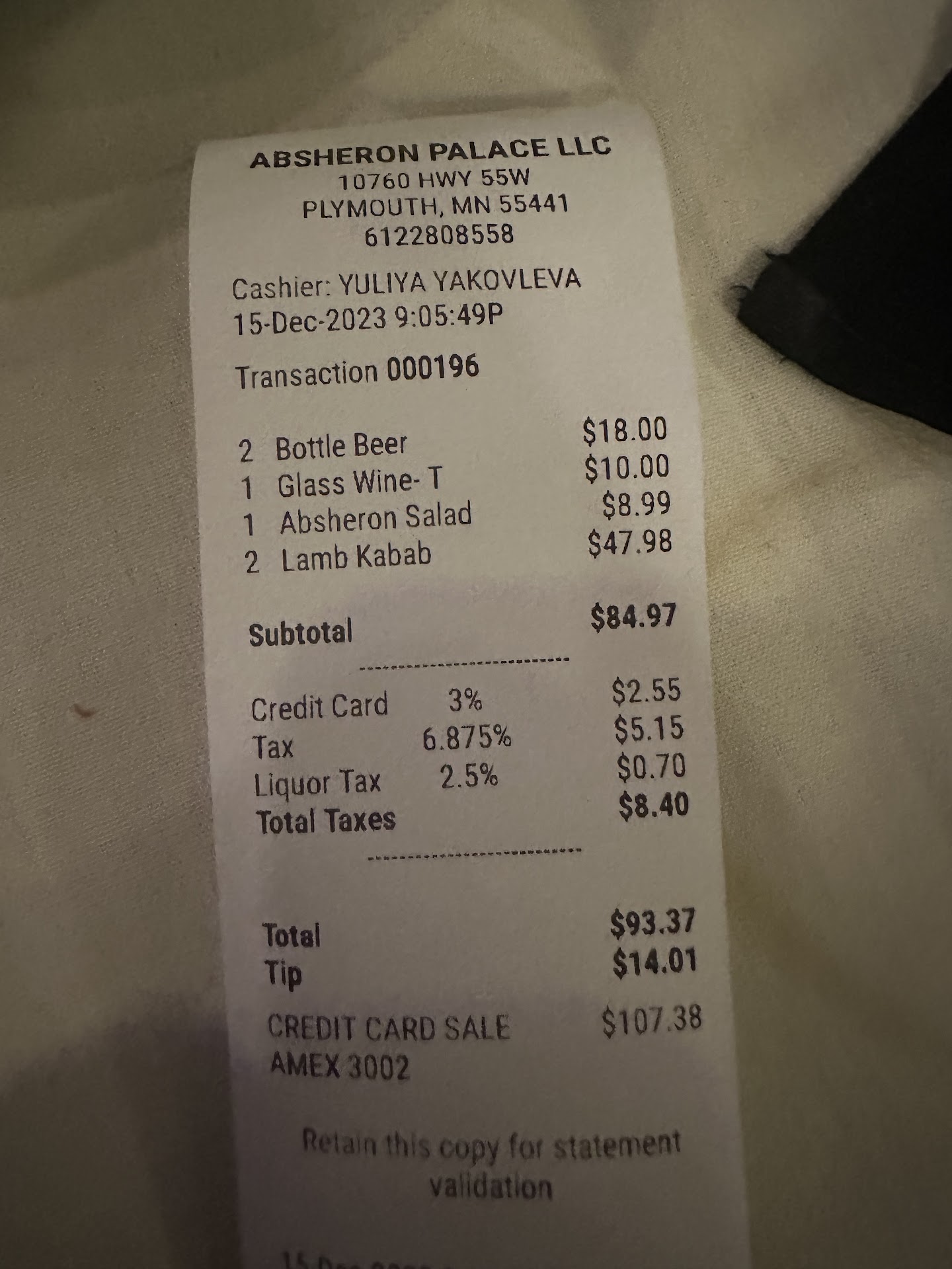 Read moreThis is the most amazing authentic middle eastern food and experience you could try in the twin cities area. Not to mention the indoor atmosphere. Live music also there with great sound system. Some negative reviews I saw does not seem true as what was described. Must...