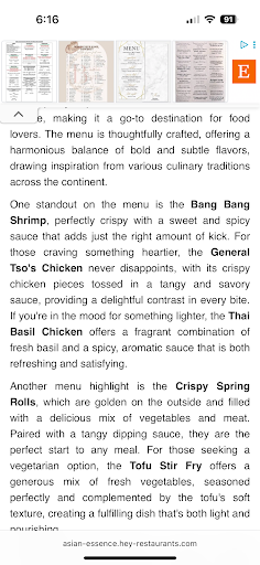 Ā Ā Ā Read moreI truly hate, leaving bad reviews and usually if I have a bad experience, I just donāt leave a review at all, but there were so many good reviews, but I thought this place had to be great. I ordered hot basil, fried rice with tofu and vegetables and pineapple fried rice with chicken. What I got was bland overcooked rice with vegetables and tofu and basil fried rice with chicken so I called to ask if I could swap it out and was told thatās what I ordered Too bad. Iāll probably give it another shot because Iām an eternal optimist and hopefully this was just one bad night, but it was fairly awful And bad food with bad service isnāt a...