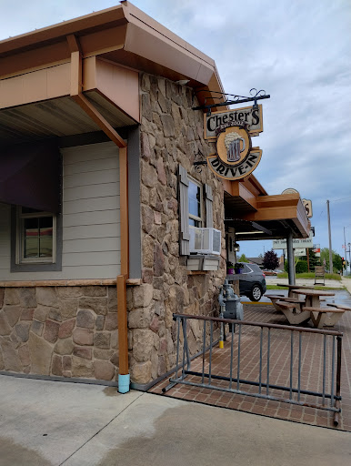 At Chester's you park your car and a waitress will walk up to your car to get your order. Dont bother waiting for a menu , they have a large "shared" menu. It is located directly under the roof of the covered parking. (If you park there- it's straight ahead of your car and up a little.)