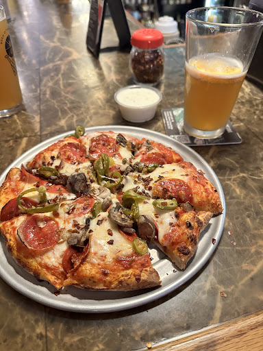 Read moreThe first 2 times we tried to come here, we ended up leaving without even sitting, the 1st time after being told there was an hour wait, the 2nd time because we stood in a line at the door while literally NO ONE who worked there was even in view other than the bartender for probably 10 minutes. Why they think they can leave people just waiting on the doorstep for that long, who knows. Not a welcoming vibe at all. The 3rd time we came here was for a friend's son's birthday dinner. She told us she'd made reservations for 5:30pm (on a Saturday night). Our family were the first ones there, and after making it up past the already long line, we figured surely we'd be seated quickly with a reservation. However, we were met with the same thing as the previous two visits: nothing. No host/hostess manning the lecturn. So we waited. And waited. A couple waitresses passed, loaded down, moving quickly, and being sure not to make eye contact with us or anyone else in line. Otherwise, once again, the only other employee in sight was the busy bartender. Twice, a different person came up to the lecturn (finally!), but neither of them even looked at us as they hastily scribbled something on a paper before leaving again, let alone made any indication of greeting/helping us. After probably, again, about 10 minutes of this being ignored, we were getting antsy, but then someone did eventually come up and ask if she could help us. We gave our friend's name for the reservation, and gee what do you know, there isn't a reservation under that name. There's only one reservation for the time for 6-9 people under a different name that, hey, sounds a lot like our friend's name. Couldn't possibly be us though, according to the "I can't help you" look the girl gave us. I called my friend, who confirmed that she had made the reservations, first for 6-9 people, then had called an hour ago to up it to 12 people. Again, I was just met with a blank stare after relaying this information. Long story shortened (somewhat lol sorry), we finally had them seat us at the table for 12 that was, indeed, ready & waiting for us this whole time, albeit under the wrong name. Ok, relief. We made it to a table. Everything from there was fine: the waitress was friendly enough and did a pretty good job keeping up on taking care of our party, considering its size. I believe someone from the restaurant did address my friend before we left, apologizing about the confusion with the reservation, which was nice. Also, the pizza was excellent, no complaints there! Still unsure if we'll ever be returning though, at least without a clearly spoken reservation and/or not on a weekend. The lack of reception here is just hard to get...