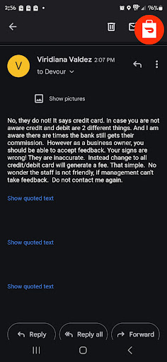 I never complained to you regarding breakfast. I saw the time and that's why I did not order as that's what we were going to order. If I choose to buy breakfast before 1pm, I am within my right!! THE SIGN DOES NOT SAY ALL CARD!!!! YOU DONT WANT TO TAKE OWNERSHIP ON THE RUDENESS OF NOT AKNOWLEDGING WHEN SOMEONE SAYS HI WHEN THEY COME IN. OK. WHAT CAN I EXPECT FROM THR EMPLOYEES IF THE OWNERS ARE A JOKE TOO!! You want to be shady and lie....