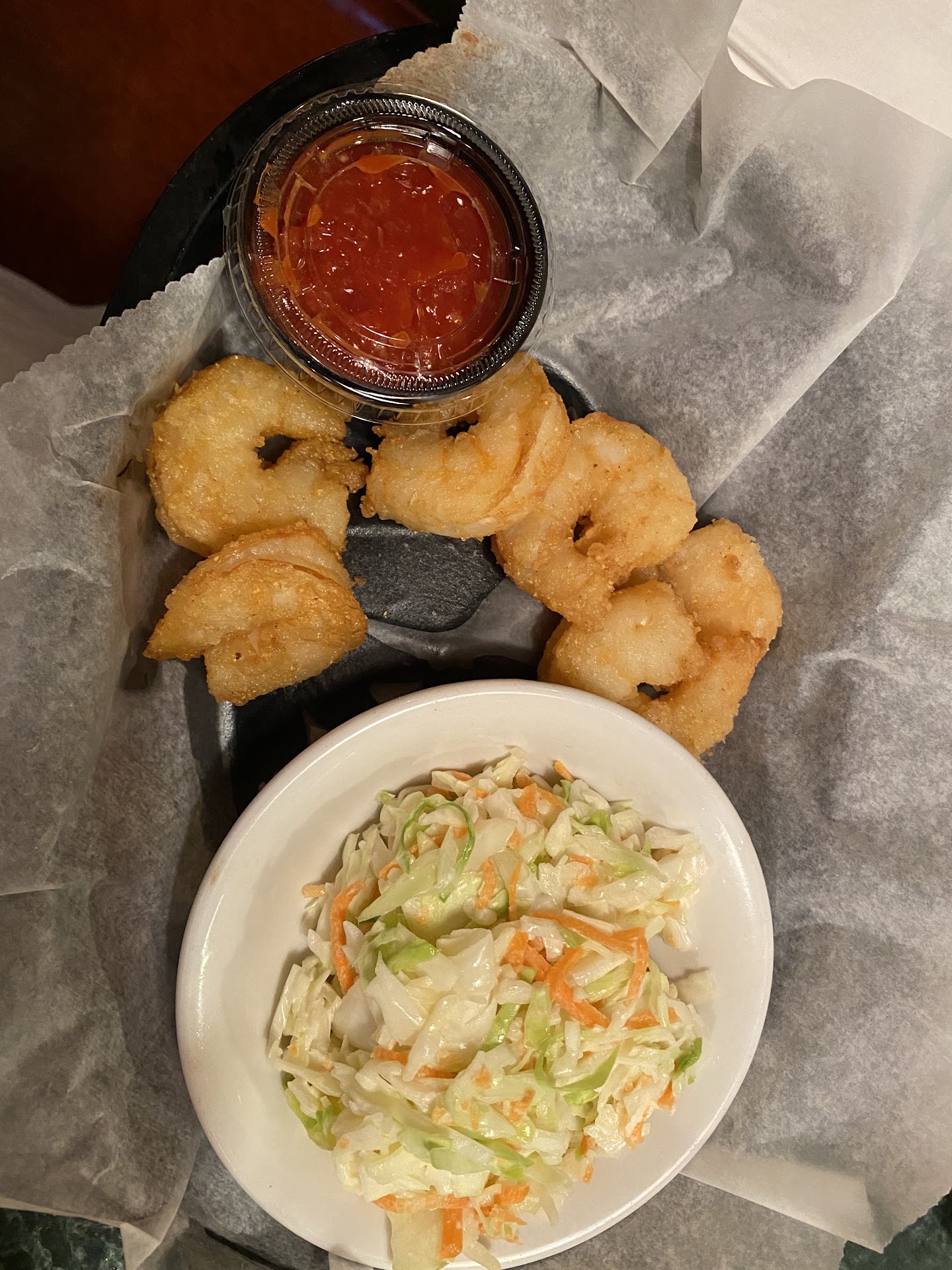 Last night was the first time I was disappointed. I ordered the shrimp and coleslaw plate for $16.00. Out came 5 small shrimp and a little bowel of coleslaw. Because I did not get the fries I was offered double coleslaw portions and this is what I got. Not even a full cup of coleslaw and you see the shrimp. I thought I was at the airport for a minute ordering dinner.