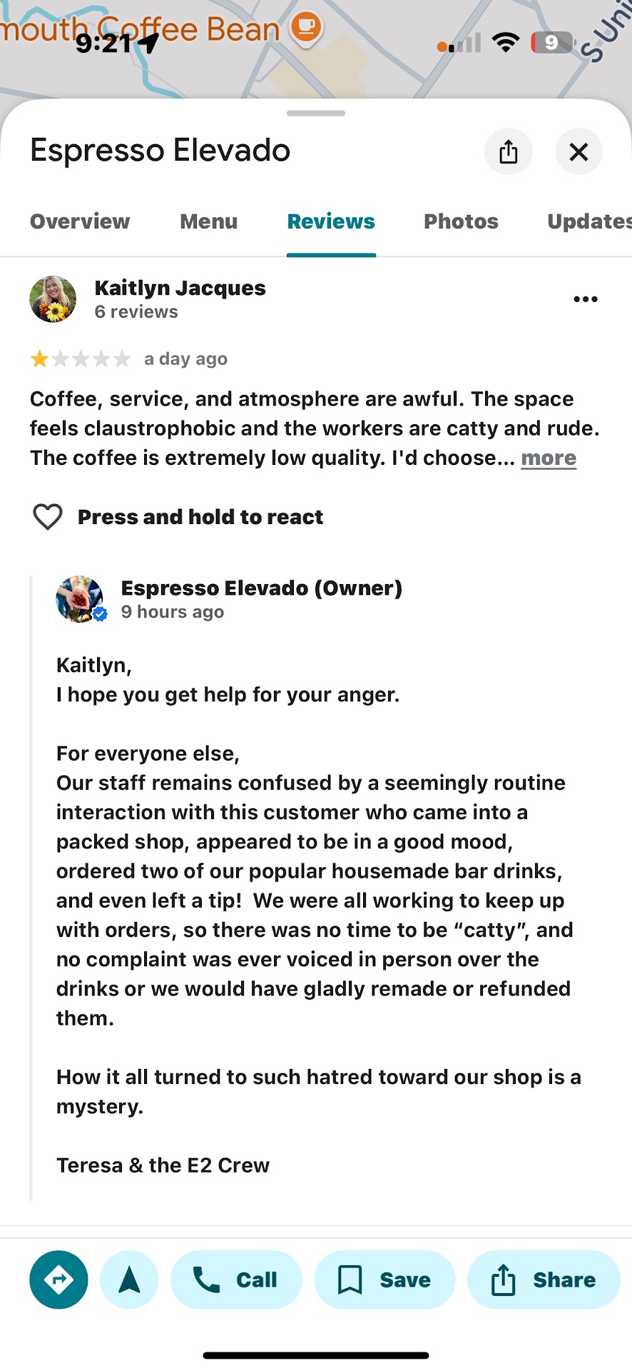 It's probably a bit nitpicky to knock a star off for this (I even considered going down to 3-star review), but when you charge ~$5.00 for a 12oz black coffee, and some bags of beans are up to $32/lb ($24 for 12oz bag), I think it is fair to have high standards.