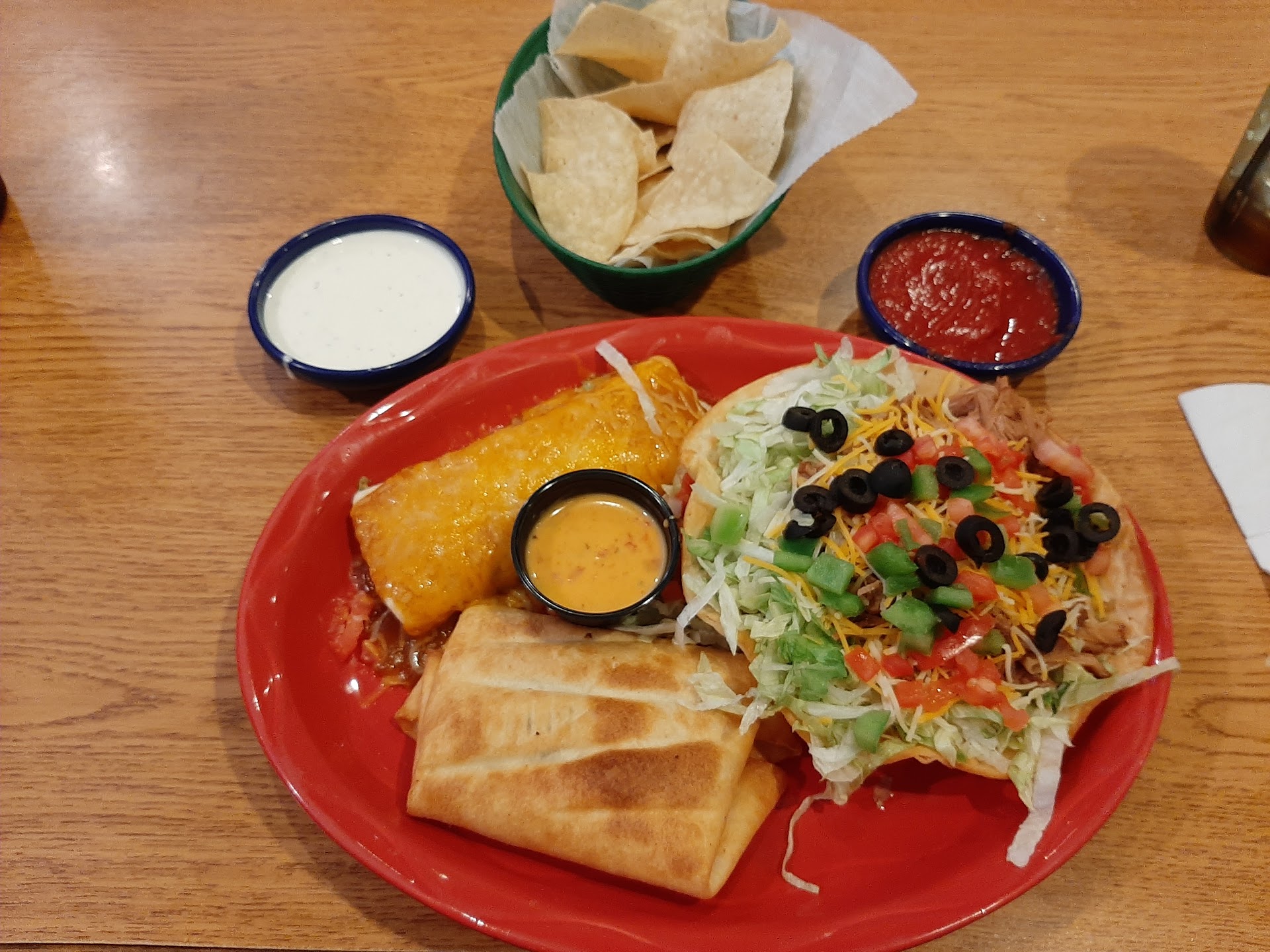 Read moreplease don't waste your time and money eating here. Party of 8 . They sat us in the party room. Party room was dirty, tables were dirty and had sandals on them. We sat for awhile waiting for at least some waters and someone to take our drinking orderes since our mouths were burning from the chips and salsa. Waitress finally comes and takes our order ( Michelle) we ask her couple of questions and she seemed to not know anything about the menu. We finally ordered food and let me tell you, worse flaw of food. I ordered the chimichanga with steak. Came back so burnt and crispy, steak was dry and burned. She was nice to exchange my whole meal for another. While waiting my son still has not got his taco meal. Waiting and waiting I finally got my new meal. I ordered tacos. It was ok. My son still has not got his meal. So I was thinking she forgot to put it in. She didn't check on us and didn't refill any drinks. We had to call her multiple times for things we needed. I will never ever come here again. This is not a Mexican restaurant, I don't know what it is and servers definitely need some more training or please hire Mexicans who know...