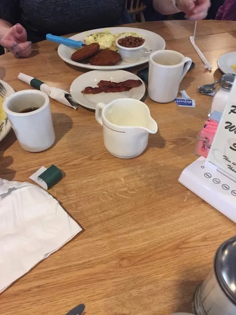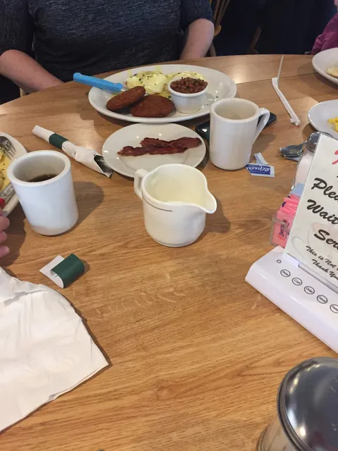I’m so upset I decided to stop in for a “quick” bite to eat... I was there for over an hour! I firstOrdered a coffee so the waitress filled my mug and as I looked for creamer on the table there was none so when the waitress came back to take my order I asked for cream and she turned around and took Someone’s left over creamer off of their dirty table not only was it someone else’s left over but it was not cream it was milk! So I then asked her if their hash was homemade or canned she told me it was homemade so I got the hash Benny and I ordered a side of the Texas style French toast when my food came out I noticed that the hash was canned hash and the Texas style French toast was just Texas style toast toasted in the toaster and she told me that’s how their Texas style French toast is just put syrup on it and it will be good no it was literally just toast with butter and syrup! Nothing French about it! Not dipped in eggs or fried! Just toast with butter! They did take back the hash Benny and made me a regular eggs Benedict with Canadian bacon but still the only thing she took off the bill was the coffee?! Which mind u was absolutely disgusting I believe it was brewed with left over grinds it tasted like watery cheap coffee! I have been a waitress for 8 years and I...