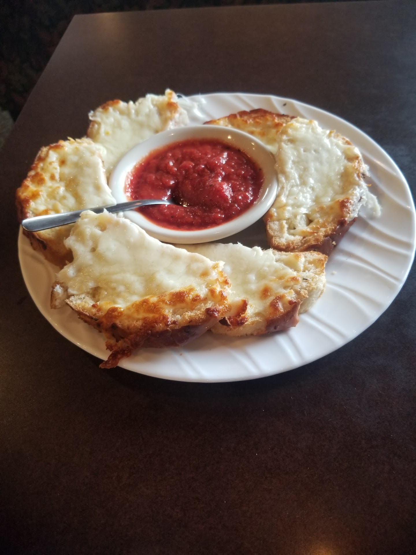 We were seated at a table, where our server came quickly to take our beverage orders. Things started off fine. After getting our drinks, we put in our food order right away, having looked at the menu online before coming. Then we waited and waited. It was busy, so we understood the wait. However, the big issue we had was with the service of of the wait staff. When another server dropped off our appetizer, he said "This yours?," dropped it at the table and left before we could respond. The mozzarella cheese bread was fine.
