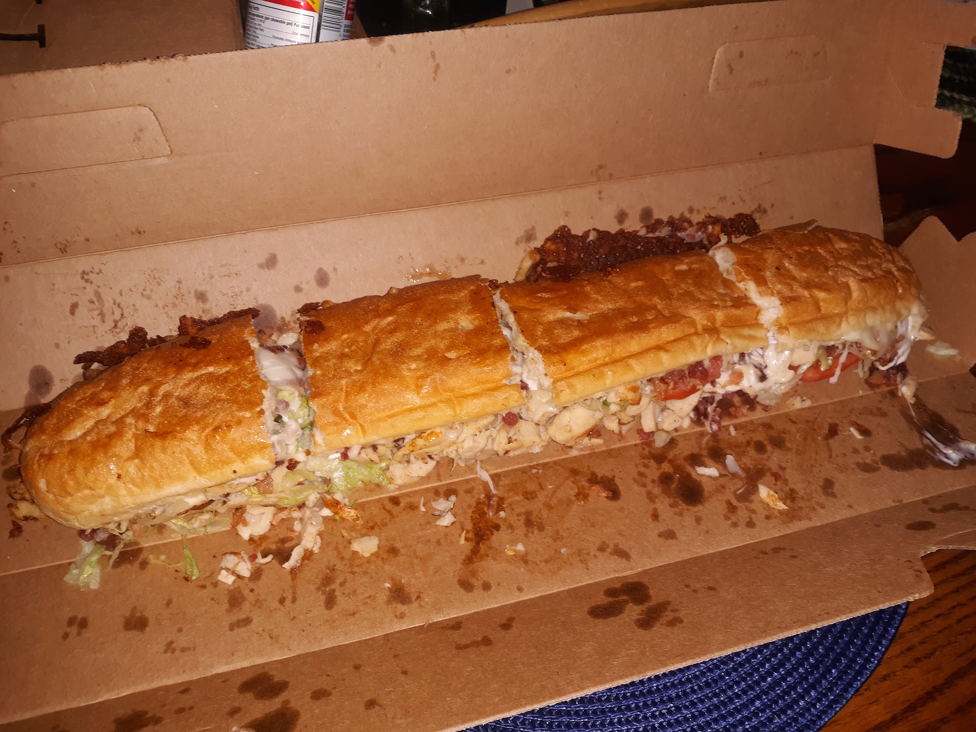 A $22.00 BLT Grinder which is bread, lettuce, tomato bacon bits. Or should I say as hard as bacon bits. Went right into the garbage Tasted like crap. I could have made the same sandwich for about $5.00. Not $22.00