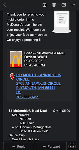 Annapolis Mcdonalds. Ordered off the app & got some free fries - my dog loves em! Anyway, it took about a minute for the gal to bring me my food. She had a nice smile & thanked me for coming to Mcdonalds. The food was hot, tasty & my dog loved the fries. The whole experience was excellent. I rarely give 5 stars. Download the app - you will be surprised how much you can save (Mcdonalds is getting expensive, but the quality of food & service is the best).
