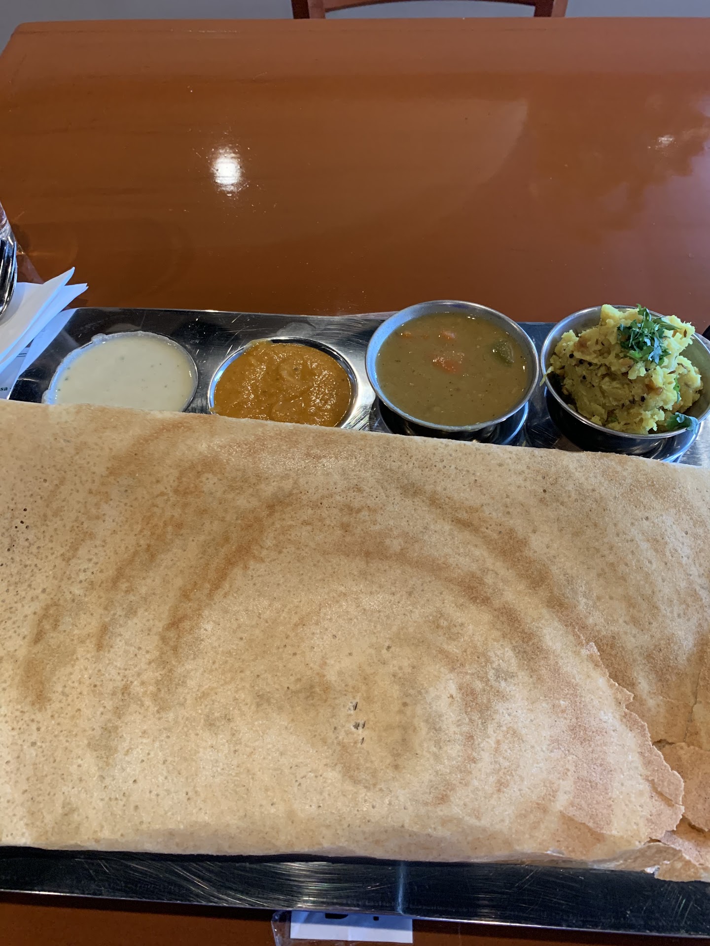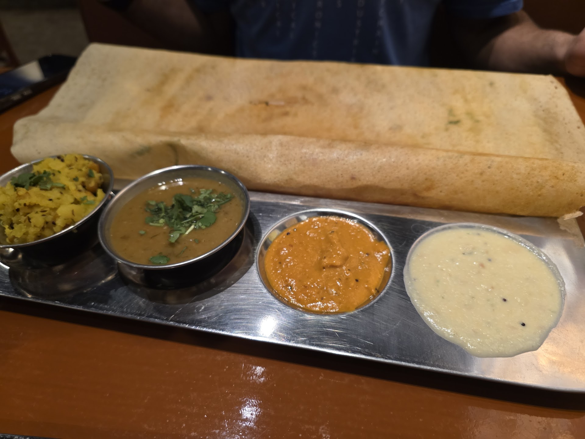 Ā Ā Ā Read moreReview 1 Went here for a late afternoon lunch date. The place was almost empty, with just one other table occupied. Service was quick and the staff were courteous. I ordered the ghee roast onion rava dosa ā usually takes a while since the griddle needs to heat up, but it arrived in just 10 minutes. That said, the onions could have been cooked a bit more, and the dosa couldāve been crispier. Overall, decent, but not wow.