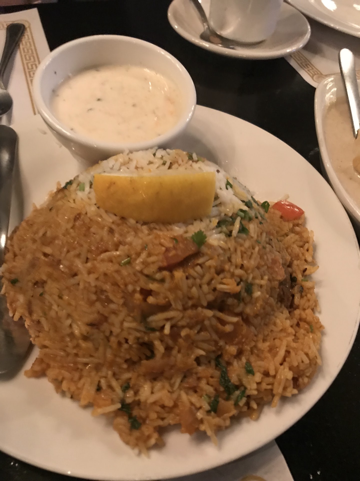 Read moreFor all the hype around this place, I thought I was going to be blown away, but it was mediocre at best. I had heard that the restaurant has the same cook from Shalimar in Ann Arbor-great food- so was excited to try out some dishes on the menu. We ordered the sesame gobi for starters, which was way too sweet and was more of an American-Chinese General Tso’s sauce than the Gobi Manchurian flavor I was hoping for. For mains, we ordered the murgh korma, paneer tikka masala, garlic naan, kashmiri naan and goat biryani. I was disappointed majorly by the biryani, which was served completely undercooked. Biryani should never be wet, but this was really mushy. Not to mention, not as flavorful as I would have hoped given all the reviews. The paneer tikka masala was quite sad, very bland and generic. The murgh korma was the highlight of the meal, which went great with the garlic naan. The kashmiri naan, which I was expecting to be sweet-savory, turned out to be a “dessert naan”, filled with a sweet chutney. Didn’t really pair well with anything we ordered.