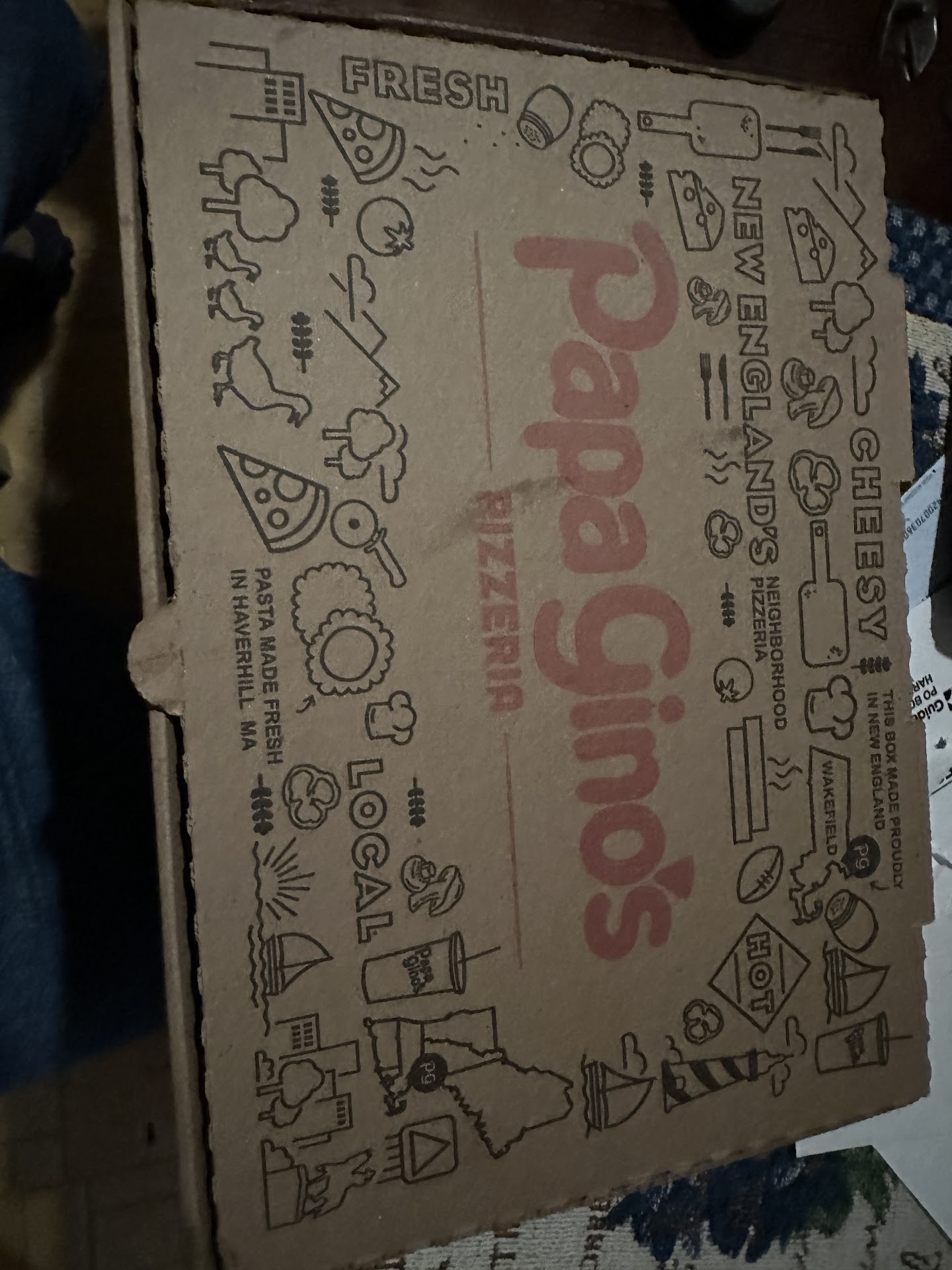 Online order that I received an email saying they got was very very behind when pickup was supposed to be. They blamed it on saying the ticket just printed out when I showed. No apology, no nada with woman at counter. Guy that brought out was nicer. Haven't had any problems with other papa Gino's. The place was quiet it wasn't like they were busy. Just admit your mistakes...