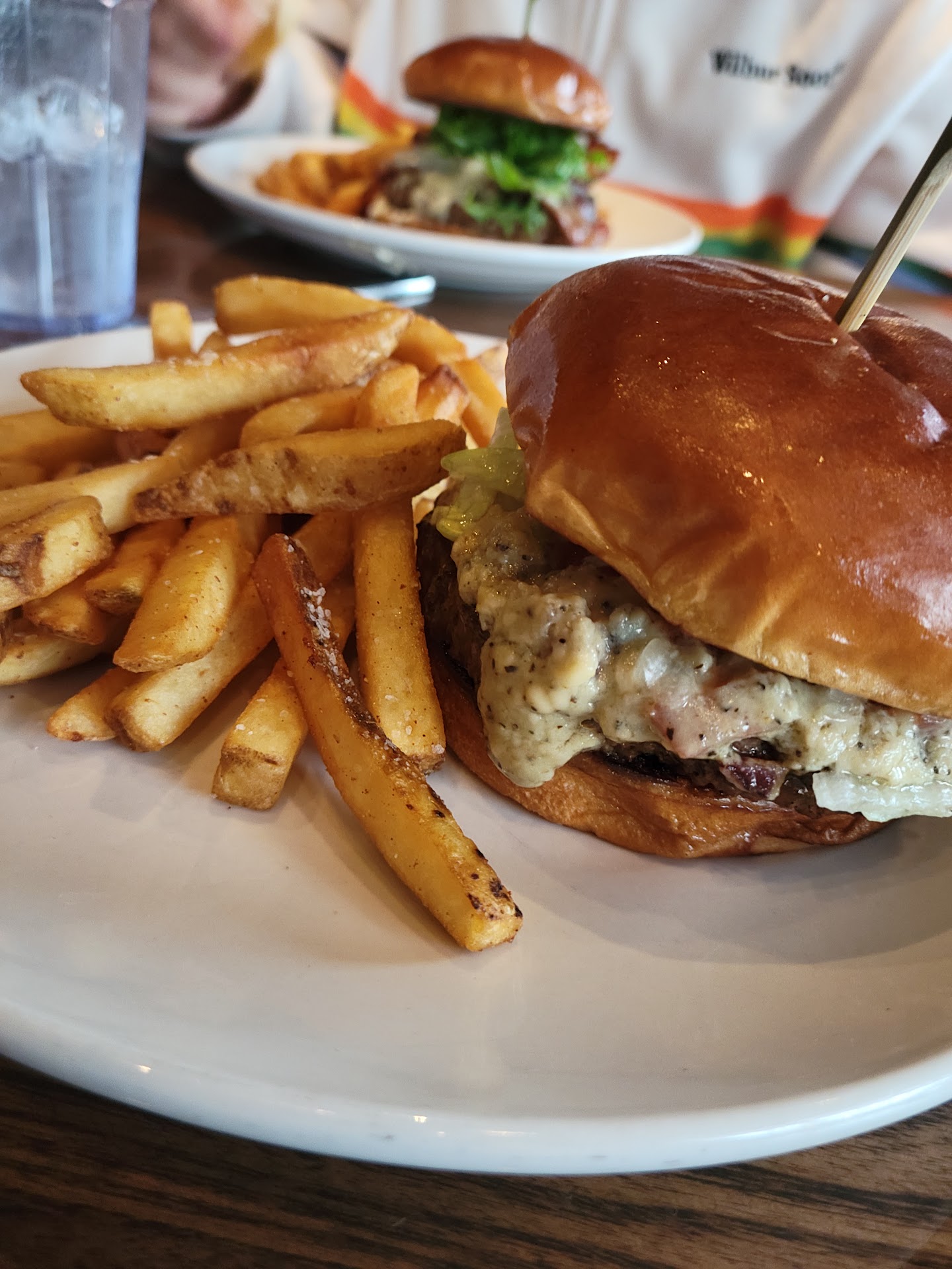 Manager came by and took our salads, said she understood the tarragon vinegrette was an acquired taste and was super nice. Then the burgers arrived and blew our minds. First, fries were perfect - crunchy outside soft inside. Portions were perfect as well. I got the burger with blue cheese infused bacon and steak sauce and it was so great! Like 15 things going on in my mouth with that burger, all working together. My daughter got the white cheddar bacon burger and felt it was equally excellent.