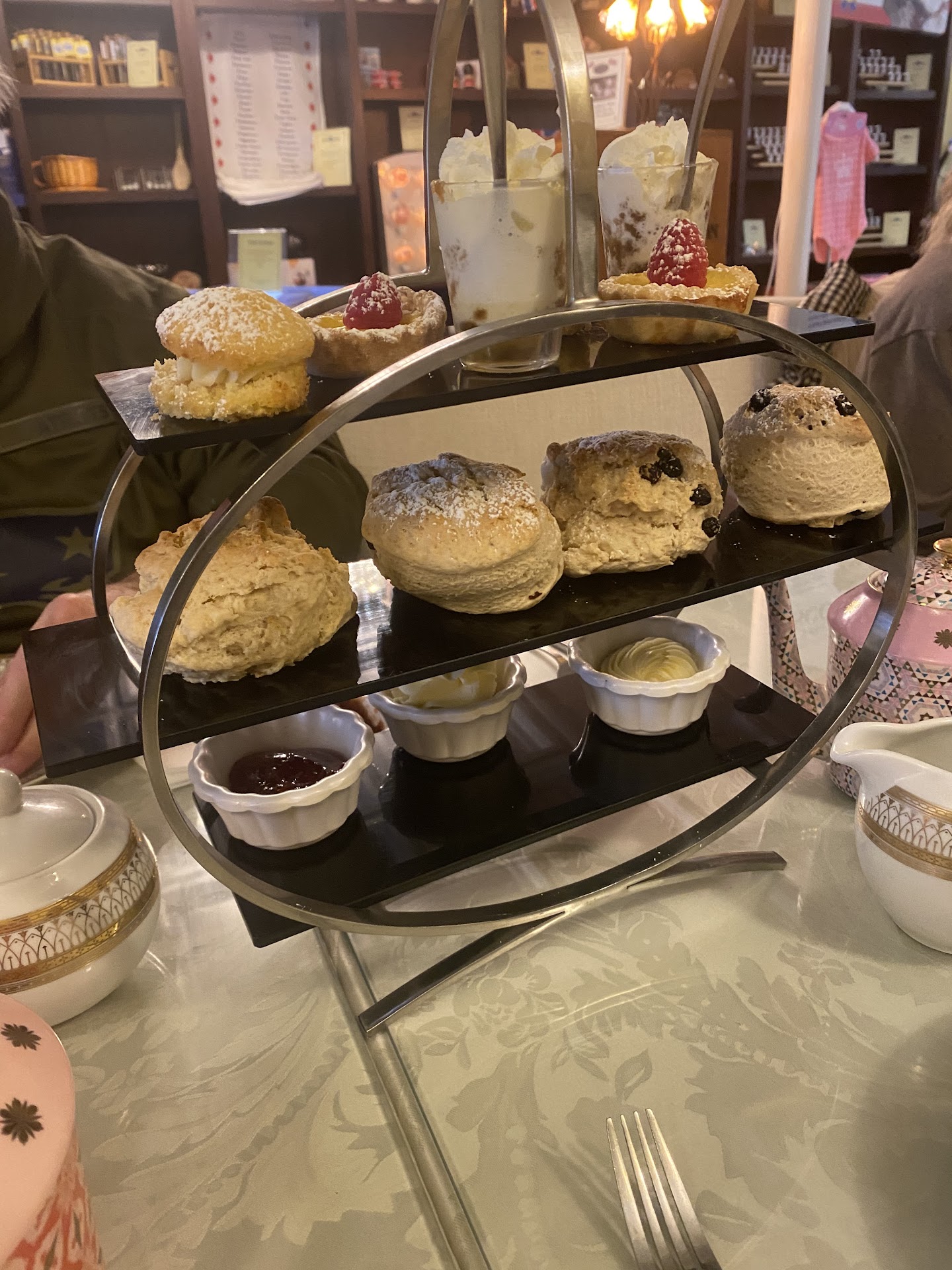 One most impressive item is that there are over 100 varieties of tea to select from! You can also buy the packaged tea or frozen scones, fresh made scones or desserts as well plus other gifts.