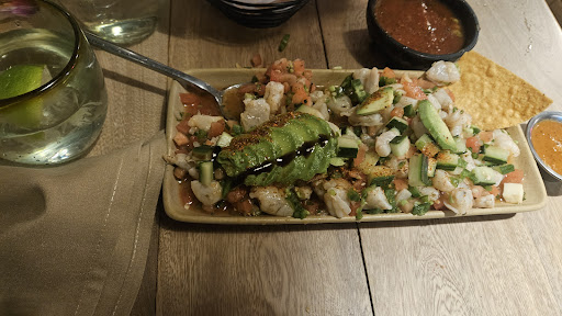 Found what appeared to be a piece of shredded latex glove in the ceviche. Pretty nasty but the Manager said that it was a piece of the plastic bag the shrimp comes in and she was sorry but if I had my kid or if I had swallowed it we couldve choked, plus idk what was on it. They have good drinks but this being our second time there and it being 7 on a sunday with no one there, they shouldve taken the time to check and make sure there was nothing wrong with the food especially since they put a flower on it but couldnt make sure that there wasnt a piece of plastic bag or glove in the food. I would somewhat understand if they were super slammed mistakes happen but there were servers standing around doing nothing and only 3 tables in the place . staff was super quick to get the glove out of mind out of sight or else I would of taken a picture of that as well. Which makes me think thiz had happened before since they were so quick to take it away and toss it. Bottom line Would not recommend eating here. We thought it was our new go to spot after our first time and actually craved the ceviche but after finding plastic bag from raw shrimp in cooked food I will never eat ceviche again. We really were excited because it was super great the first time which is really disappointing....