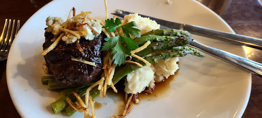 We were seated immediately for our 6:15 reservation on Friday night. I got the filet mignon with gorgonzola, garlic roasted asparagus, red bliss mashed potatoes, and sitting in a red wine demi glace for $33. The meal was good and filet cooked perfectly, but flavor was off a little on the steak and with the portion size of the meal overall, you can get more bang for your buck at just about any other great restaurant in the area. I couldn't put my finger on it but after all the filets I've eaten, for some reason this one was off. Maybe my taste buds were off tonight, idk. Mashed potatoes were good, but were already cold after being at the table a couple minutes. Asparagus portion was small and stalks were thin, but they were cooked perfectly and tasted good. Espresso martini was actually very tasty, and on par with the Black Raspberry in Plymouth (my favorite). Not a seafood fan but there is a ton of options for those that are!