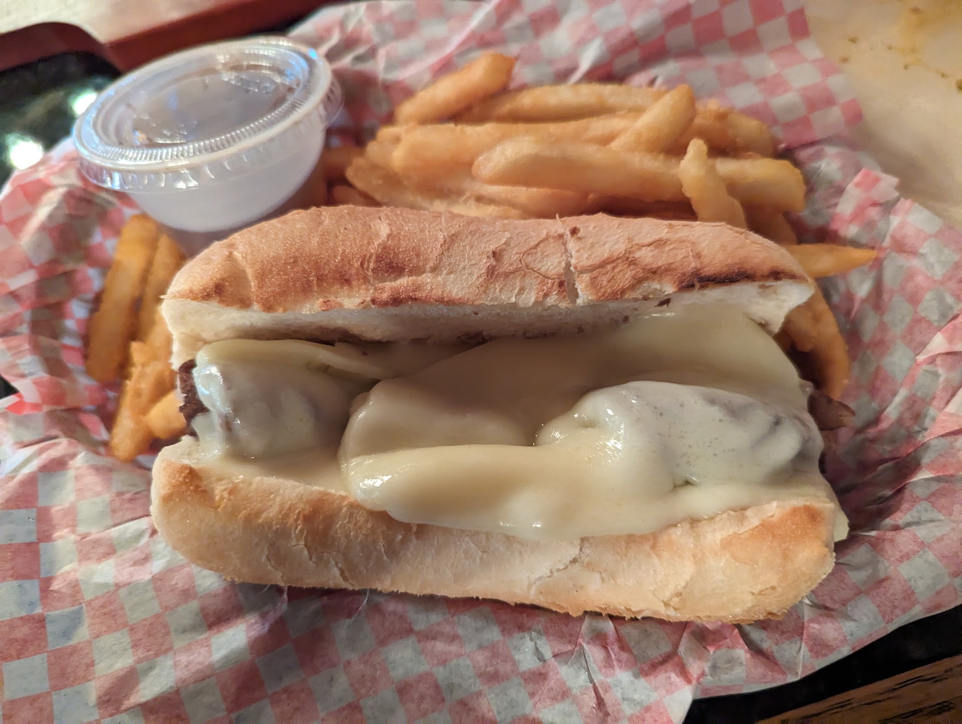 Food: 3 out of 5 stars. The menu is very simple, which is nice for those who get overwhelmed with choices. As some might say, it's pub food, not super special, but not bad either. I had the pulled pork fries and the Italian beef. The pulled pork fries were okay, my only critique is that the pork tasted more like a slab of ham than pulled pork. It was also slightly dry. The Italian beef was not what I was expecting. You get a little plastic cup of Au jus that tasted nothing like any au jus I've ever had before. If the au jus would have been a normal au jus dip, I would give the sandwich a 4 out of 5 stars, but that wasn't the case. 2 out of 5 is what I have to give it.