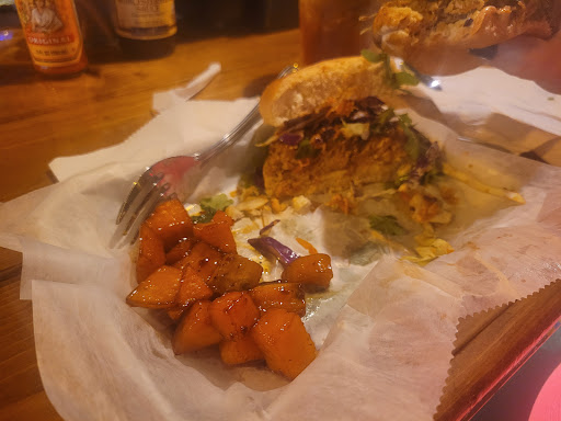 Our meals were unique and delicious. 1. Picanta burger w/ fries and 2. BBQ burger w/sweet...