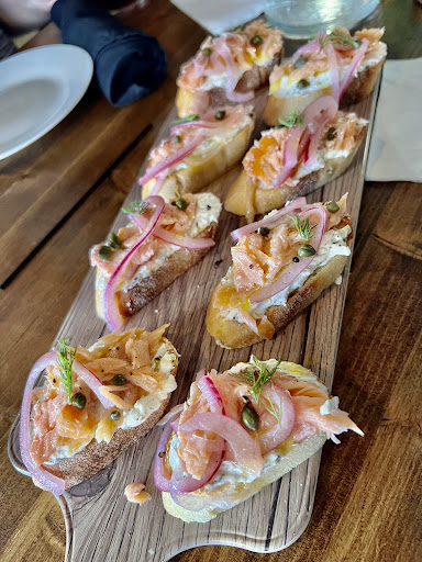 Read moreBrick 243 is amazing. If you haven’t eaten here, you must. I’ll tell you why. This place is all about shareable dishes. The food is meant to be shared with others. I recommend coming with at least one other person. I was with a large group and we were able to try many menu items. We had three crostini boards. The lox board, jalapeño cheddar bacon board, and the mushroom basil pesto board. They were so good. Crostinis are toasted slices of bread, the size of a baguette, with lots of tasty toppings on it. We also had the bread and pesto, which was great. We had the proper pork sandwich, the Frankie sub, and the tacos. Everything was delicious. The food is high quality and you won’t regret coming. Portion sizes aren’t large, but if you order a crostini board with your meal, you’ll be full afterwards. The sandwiches comes with chips not fries, so don’t be surprised. The sign outside is eye catching, it made me want to stop by. The inside is very cool and the art on the walls is fun to see. The service was personable and great. I...