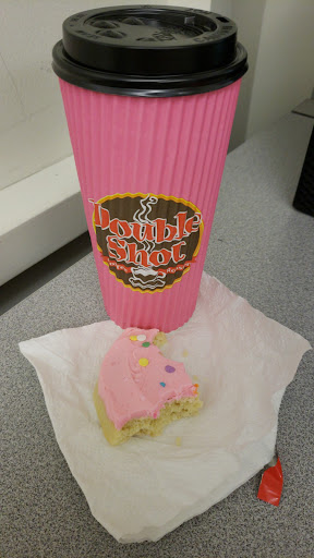 For some reason, I autopiloted myself to a place I haven't stopped for a while... Double Shot. When I got there, I soon learned that they did not have peanut butter for lattes. It was a disappointment but hey we can't have everything that we want, I ordered a different drink and a muffin. We all need snacks!