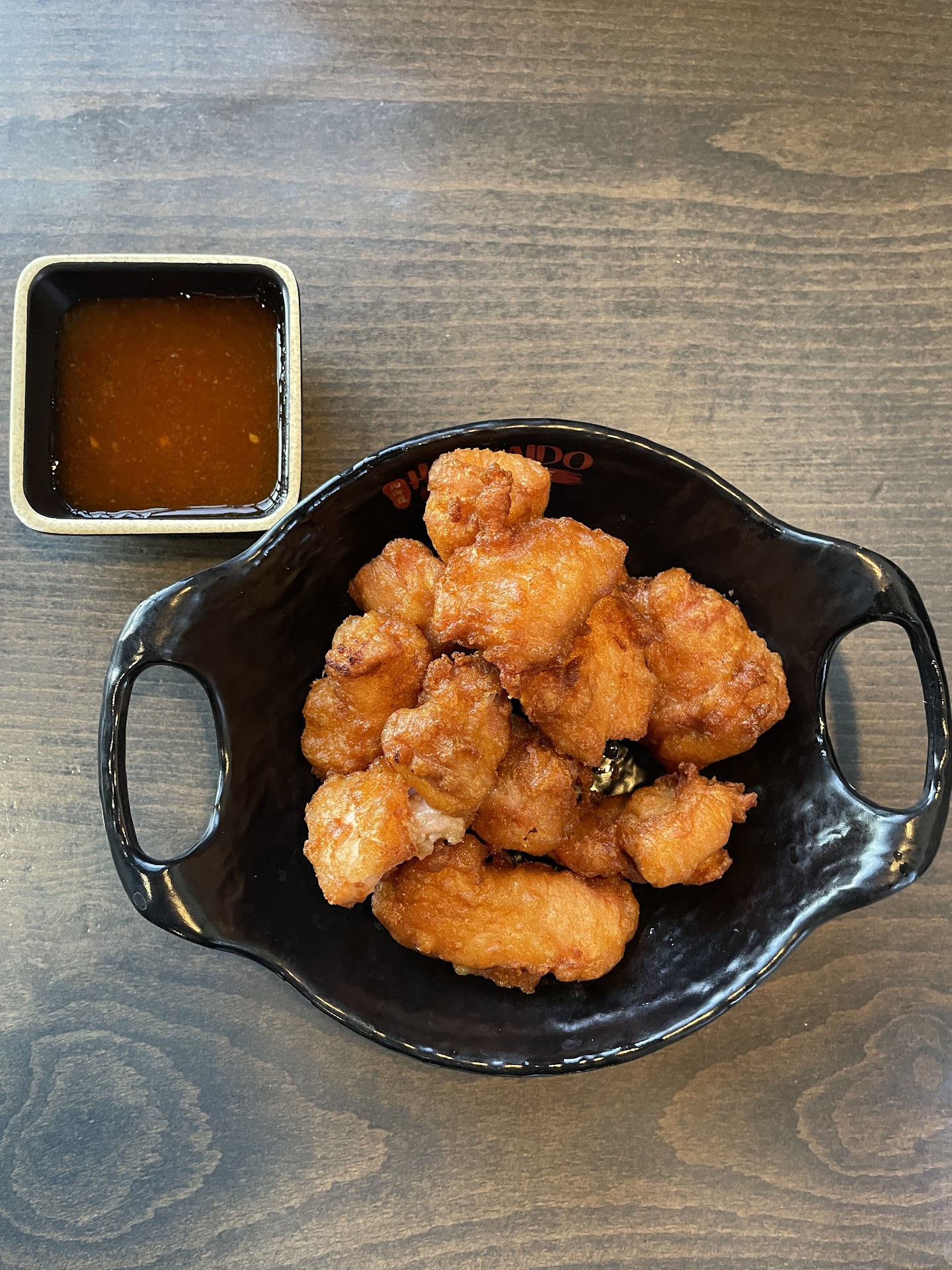 I've tried many of the appetizers here ranging from the hawaiian poke salad, salmon misoyaki, and takoyaki, to the tempura shrimp and chicken karaage. The karaage and misoyaki were decent and the poke salad was exactly what I was expecting. The takoyaki was absolutely buried in bonito flakes and incredibly one-note as a result. Finally, the tempura shrimp were unfortunately the worst I've had in town. The tempura batter was beyond bland and reminded be, quite disappointingly, of dry rice krispie cereal.