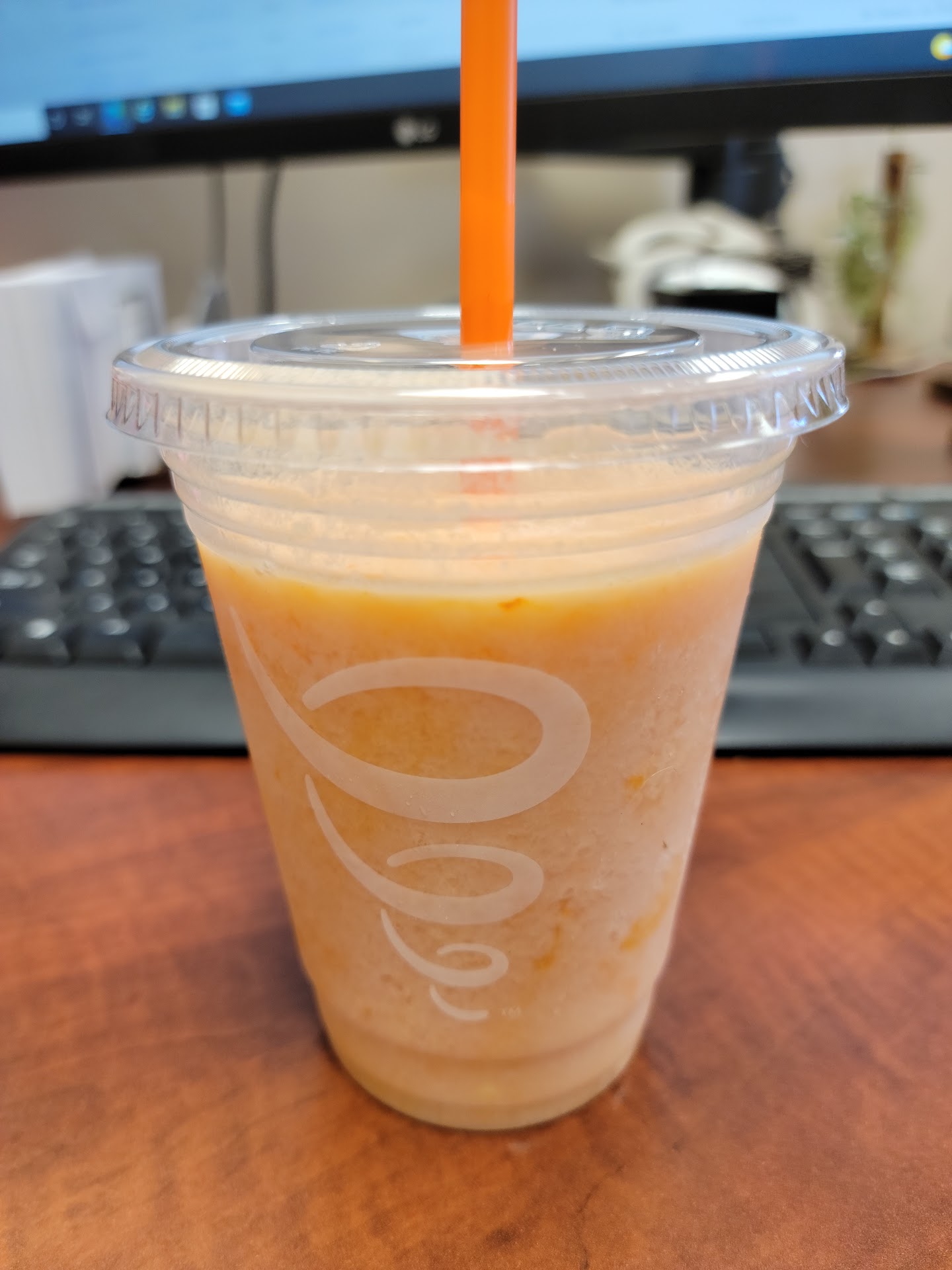Okay so I've gone to Jamba Juice here in Pocatello over on Yellowstone road a few different times. Now the first time I had Jamba Juice it turned out to be pretty damn tasty. However the second time I went that wasn't the case at all, I wound up getting sick to my stomach and committing "Montezuma's revenge" in the latrine. As for the third time I visited them I got the same drink as the last two times a La Vida Mocha with peanut butter, 3G energy blend and Whey protein boosts to which I codenamed 4 x 4. So this time around when I went to Jamba Juice to get the same smoothie I bought the last two times, welp while consuming it I had nearly swallowed a unidentifiable chunky and slimy something rather or another (see pic below). I'm quite unsure as to what the unholy hell it is I almost swallowed but I can most certainly guarantee you it's not any of the following ingredients; cold brew coffee, chocolate Moo'd, nonfat frozen yogurt, chocolate Moo'd base, soymilk, ice, bananas, peanut butter, a blend of green tea, guarana and ginseng, or whey protein. I'm just saying that it's advisable that Jamba Juice employees double checks which ingredients they do or do not put into people's smoothies before...