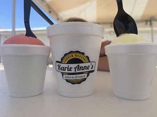 Read moreKarie Anne's is a great dessert option if you're after Italian Ice, custard, or Gelati. We recently stopped in for the first time (because our usual ice cream stop is closed Mondays) and we were very happy with it. All the Italian ice flavors were a hit, the custard was good, and the prices seemed about right. It was actually one of the most well thought food trucks I've seen, with ordering on one side and order pickup on the other. First time I've seen that and it helps avoid the typical food truck issue where you can't tell who has ordered and who is waiting. The treats also came out very quick, which was nice. Although it's a food truck in a parking lot, they have a large tent set up that shades a small handful of tables. Even though they were quite busy, there was enough seating to accommodate the high turnaround of patrons. We'll definitely be back when we're in the mood for Italian Ice! Wish I would have tried them...
