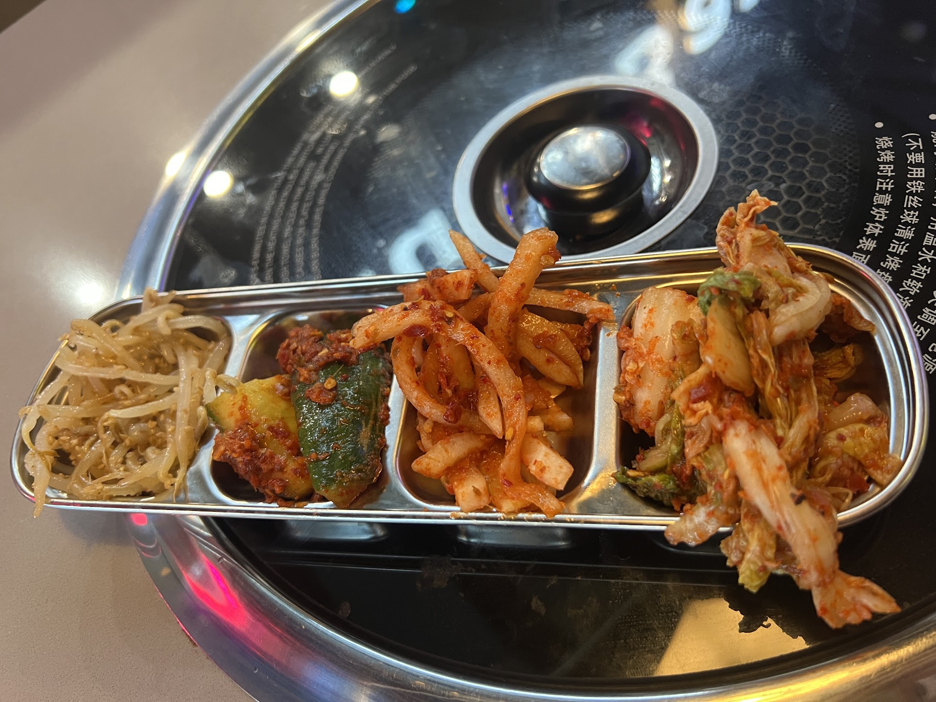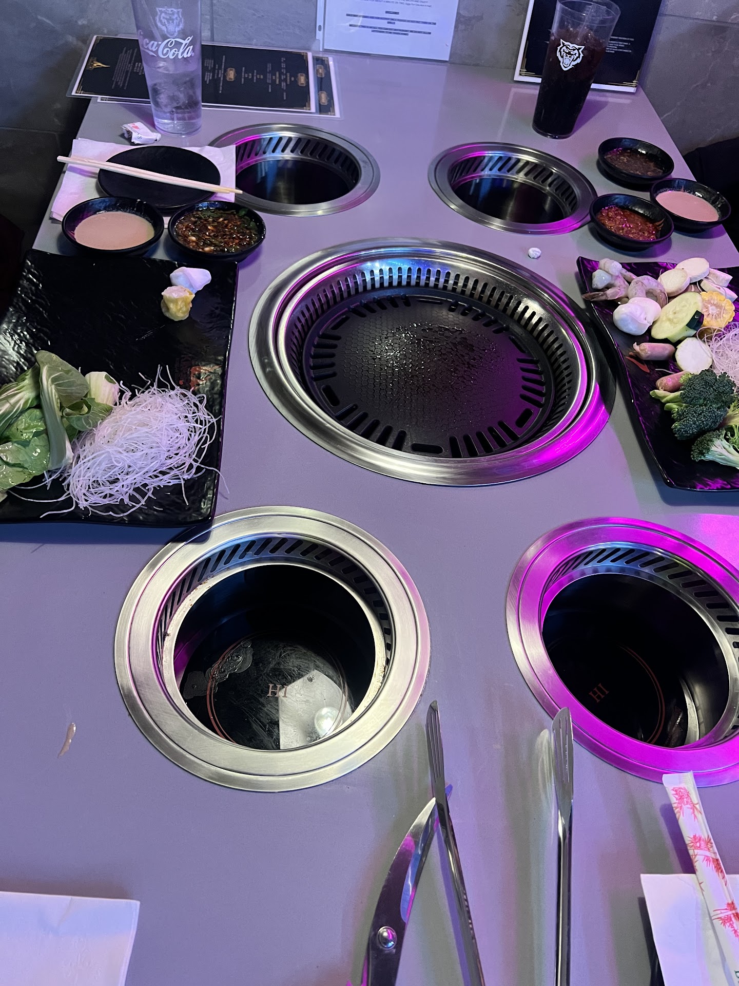 I was in town visiting family. We decided to go here for lunch. I have been to a lot of hot pot and Korean barbecue restaurants and I always enjoy them. The selection of meat, sauces, sides, etc. looked fantastic. We decided to do the full hot pot and barbecue. My family had never eaten at a place like this. We put the meat on the grill and noticed right away. It just wasn’t cooking very fast at all. We kept moving the meat around and hoping for a sear, but it just wasn’t happening. I called our waiter over and asked if she could turn it up. She said it only goes up one notch higher. She turned it up. We were able to mostly cook our food, but it took forever and we weren’t getting any really decent. The thin steak slices of course cooked well, but even the shrimp was taking a long time. Then it seemed like it was getting colder and colder. We put some chicken on And after more than 10 minutes, it was still mostly raw. I put my hand right over the grill and it was barely hot at all. I called our server over. She apologized and said it was probably because of residue on the grill and that we should get a new grill plate. I pointed out that it was definitely not that. There was barely any residue at all. She agreed and said she would tell her manager. Then nothing. Then we sat and watched as the chicken still was just not cooking. We all really wanted to try the chicken. I expected the manager to come by, but she never did. We were finishing up everything else. After more than 20 minutes, the chicken was still half raw and we decided to give up. I finally asked our waiter if I could speak with the manager. I promise I am not. They speak with the manager type, but this was a pretty big malfunction. The manager came over and suggested the same thing about the grill having residue from previously cooked meat on it. I literally put my hand on the actual grill. There was a definite problem with the table. She seemed shocked that I had my hand right on the grill when it was turned all the way up. Finally, she offered to go back in the kitchen and cook some chicken for us. By then, we were just sort of over it and done. She then just said she was sorry and walked away. Our server then came by and brought us the check. For three people we paid $90 for lunch. I’m never one to ask for a discount, but I’m shocked that nothing was offered when they could tell everything had kind of fallen apart. Our server was actually very nice and the food is really fantastic. The soup in the hot pot was delicious and very hot. if the actual barbecue had been working, no question it would’ve been five stars. Unfortunately, if you want to charge $30 for lunch at a Korean barbecue, the actual barbecue itself is pretty important. This is especially true when I point out three separate times that it’s barely cooking the meat. They need to have a trained staff and manager who know how to deal with something...