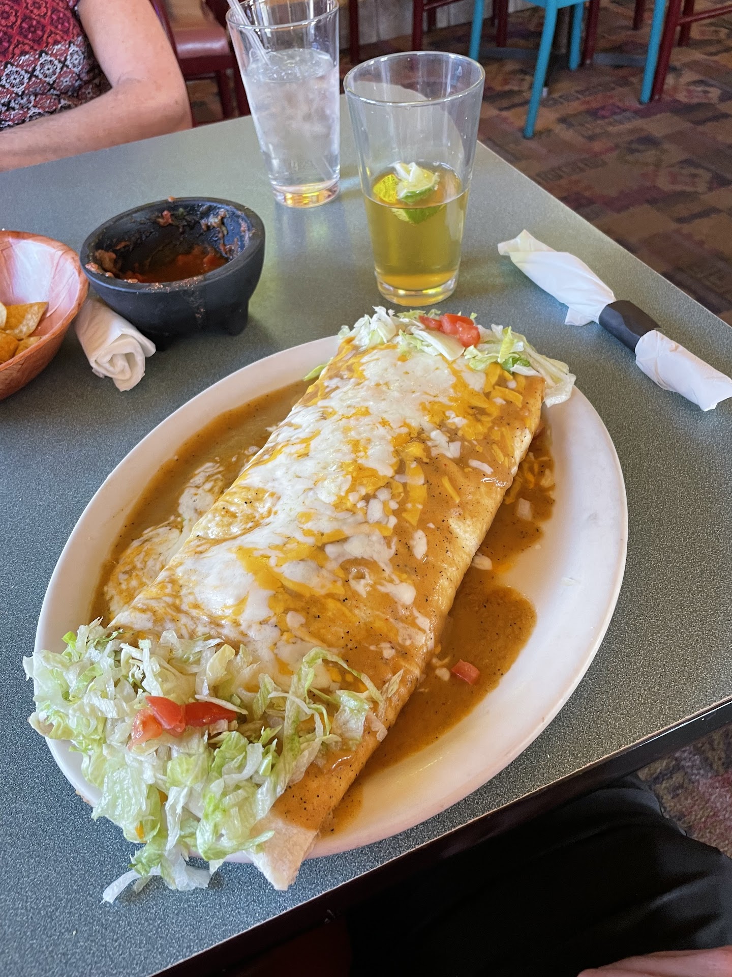 The food was just okay. I agree with the Google user who said the salsa is tomato sauce or stewed tomatoes from a can. I didn't see them ladle it out of a can like that user, but it tastes like canned tomatoes. If you're going to use canned tomatoes or tomato sauce in a restaurant, it should always be cooked for 15 minutes to destroy the metallic taste from sitting in a can. Not doing so is extremely lazy. However, the food at this restaurant is pretty much the norm for Pocatello - not good. There is an authentic Mexican restaurant in town, but the cooks must smoke cigarettes or have killed their taste buds some other way because they WAY oversalt their food. There's also an authentic Mexican drive through in town, but they make things differently every time you order; you may or may not get what you ordered and you never know what to expect. Given those experiences with the other Mexican restaurants here, Senor Iguanas is the best I've found so far. At least you know what you're getting each time and you won't have a week's worth of sodium in...