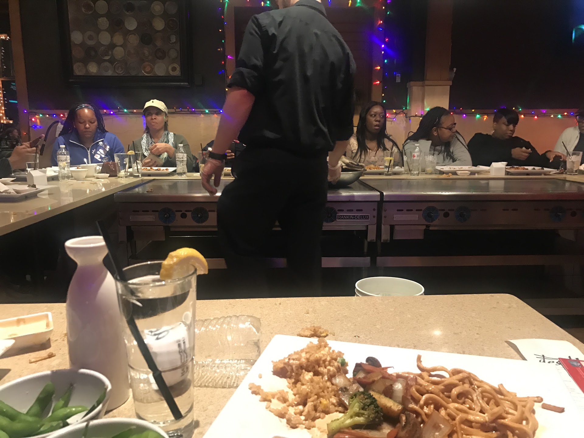 After being seated, the waiter took drink orders and then they got the edamame and soup out. However, we are STILL waiting on our last 2 friends. Then the waiter proceeds to take entrée orders. We advise him yet again that we are waiting on two people and then, for the first time in my 31 years on this earth, I had a waiter ask if I COULD CALL OUR FRIENDS AND ASK THEM WHAT THEY WOULD LIKE. I was honestly floored by what he just suggested. When our friends did arrive the waiter pressured them to order quickly with a half hearted “not to rush you but…”. It was just very rude. We were willing to wait and buy a few more drinks at the bar. They also didn’t take reservations, which would have prevented this situation from happening.
