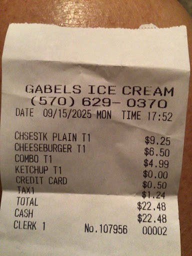 My family and I are on vacation and found this gem while going to Friendly's a few feet down the road on Wednesday 8/31/23. We got into friendly's parking lot and looked up Gabel's Ice Cream reviews and instantly turned around and went there. It was a wonderful decision. We ordered three hard icecream Banana Floats, Root Beer Float (which came with a full extra cup of root beer soda) and 2 orders of funnel cakes which are perfectly sized. They are mini's but surely filling. Everything was delicious. Excellent customer service. Price was fair. Plenty of picnic tables seating to eat at which we did utilize and had to finish in car as it got cooler outside with night air. No lines this night as I read prior reviewers. The sign is intriguing and bright to catch the eye so you won't miss it. They have a playground that a family utilized. Plenty of parking all around the place. It is a great spot with terrific hard icecream. We didn't taste the soft serve this trip. We hope to return if we are in the area. Great work Gabel's! Thanks for a wonderful...