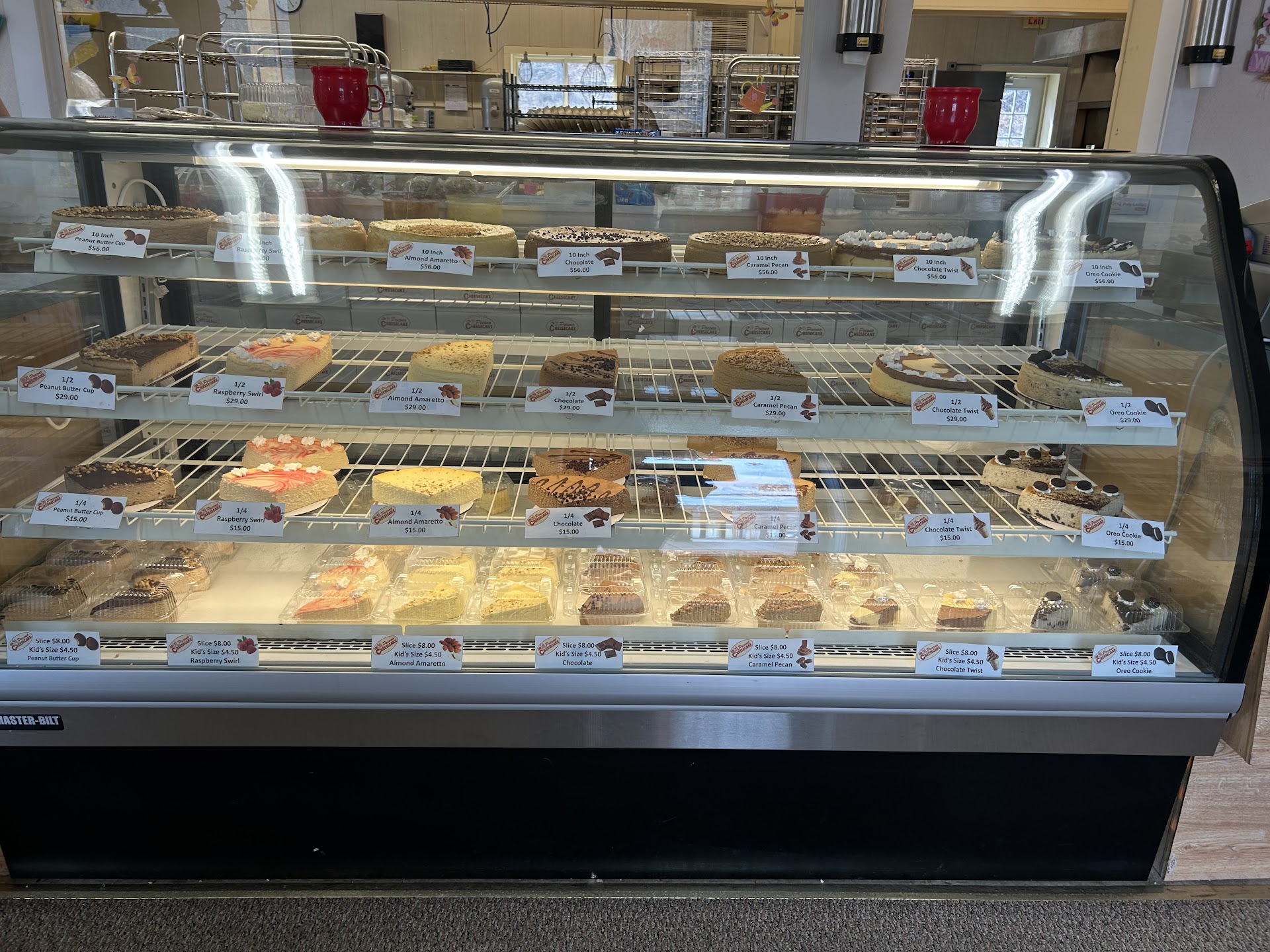 Read moreDelicious cheesecake! Today was my 2nd visit, after my 1st back in March 2020. My trips here were after finding this place when staying at Great Wolf Lodge. I got a whole plain cheesecake the 1st visit and it was delicious. This time I got a half a plain with strawberry topping and a quarter of the peanut butter cheesecake. When I got home, 2hrs away in Jersey. I tried a bite of the peanut butter cheesecake and WOW! I wasn't sure if I was going to like it, but knew I was probably going to, and I am regretting not getting a bigger cheesecake of that one lol. Would of, should of, could of, but now regretting it. Wish I just tried a sample to begin with as they mentioned they offer. Wish they had like an apple pie cheesecake! Will have to try samples of the other varieties next visit. Could be one expensive trip next time but ill have money saved aside for it lol. Only reason they aren't a 5 star for me, is because they do no graham cracker or any type of crust at all.