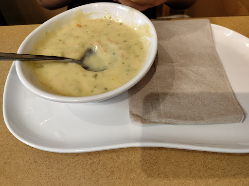 Read moreI came here with my 3 kids (3,8,14) and we ordered 2 soups, Mac and cheese, and 2 sandwiches. It was $49. Crazy, but okay... No cups in the self serve area, figured they would put them with our order but had to ask. They also forgot one sandwich and one bread, and gave us the wrong side for one. No cup lids in the self serve area either, but at this point I just opened the storage cabinet and took one out of them sleeve. Clearly I work here at this point so it doesn't matter. 😂 The sandwiches were pathetically made and probably would have been more full at Subway. The French Onion soup hardly had any cheese, but maybe that's just how they make it? Seems every time I give a restaurant another chance I regret it. Different location, same chain, so I guess it's...