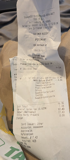 Read moreOrdered a veggie sub with VERY LIGHT oil/vinegar, wife picked it up on way home from work. It was saturated with oil/vinegar, the wrap paper was soakes/tearing apart. Bread was soggy mush. Disgusting slop!! Even if I just ordered oil/vinegar it was way too much, like it was dunked in a tub. (I ordered (VERY LIGHT OIL AND VINEGAR)!! Too far to drive back today. Not happy. Complained to their website, no help. They said they'd send email to rectify- they failed to do so. HORRIBLE EXPERIENCE. Go...
