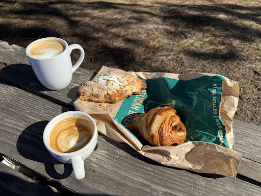 We found their booth at Gualala farmers market. I got almond croissant that was absolutely loaded with almond paste and could be a meal for half of the day. My partner got savory croissant that was amazing and had almost identical ratio of croissant to savory filling when you bite into it. To my taste it’s a bit too sourdough and tastes like a danish on the inside. I wish I would have tried the regular croissant to have a better feedback, plowing through that amount of almond paste was not a small task. We also got ciabatta in a baguette form factor and went through it in a day. It’s MUCH better than Manresa and Croissante. *We got coffee from the only coffee shop in Gualala and it was...