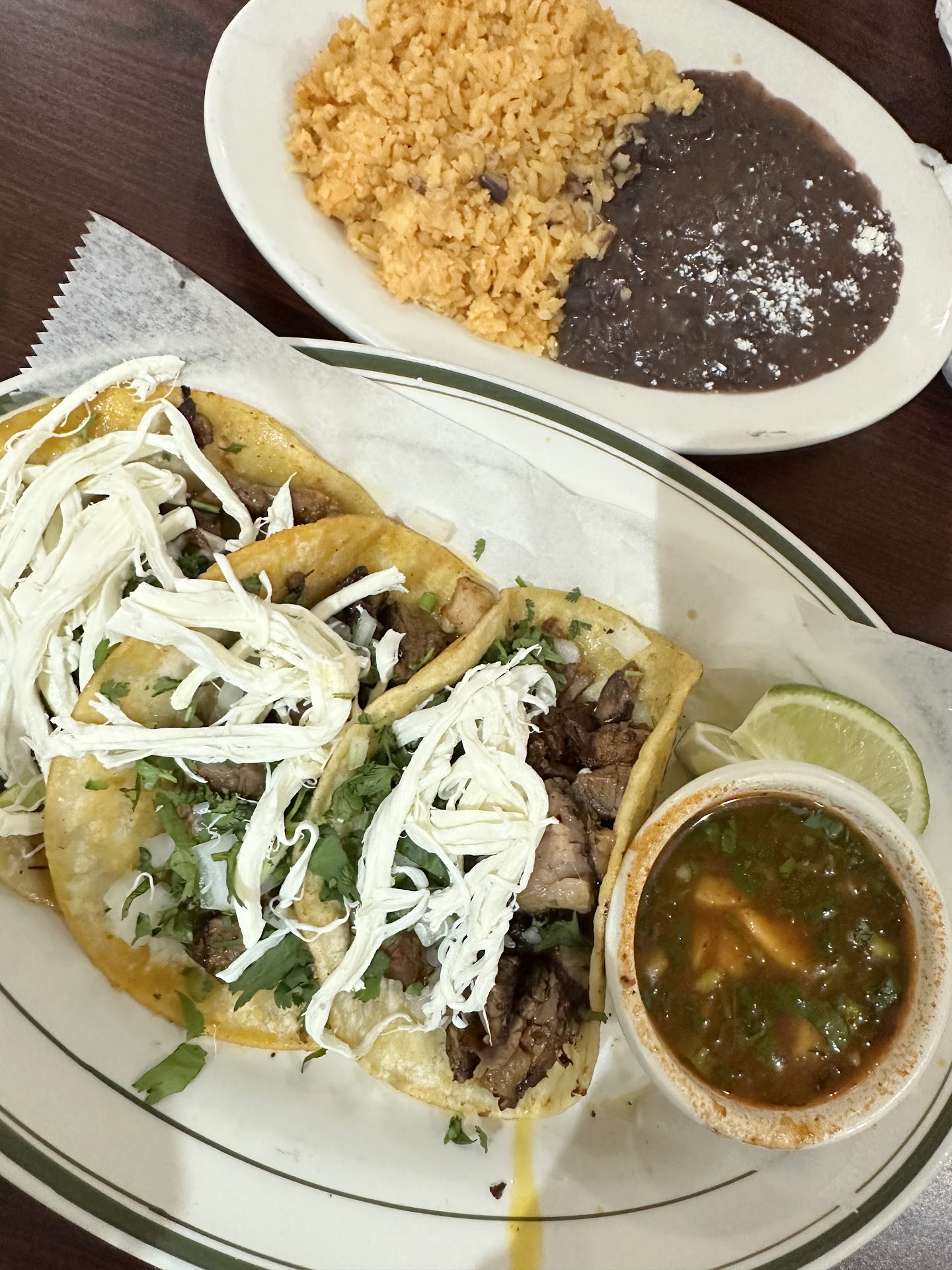 I very rarely see the Molcajete dish as an option so I had to get that. Molcajete (which is made of all rock) came out nice and hot allowing for the flavors of the meats to blend in together which was topped with Queso Oaxaca. The green salsa was perfect! Also came with side of black beans and rice and tortillas de maíz in a tortillero.