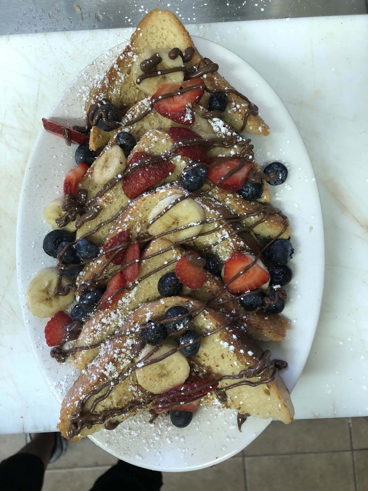 The food was okay, but not worth the price. I got the French Toast. If I had ordered it delivered from a random deli it would be exactly what I'd expect to receive. A little cold, no syrup, plain bread, a little rubbery. Really...