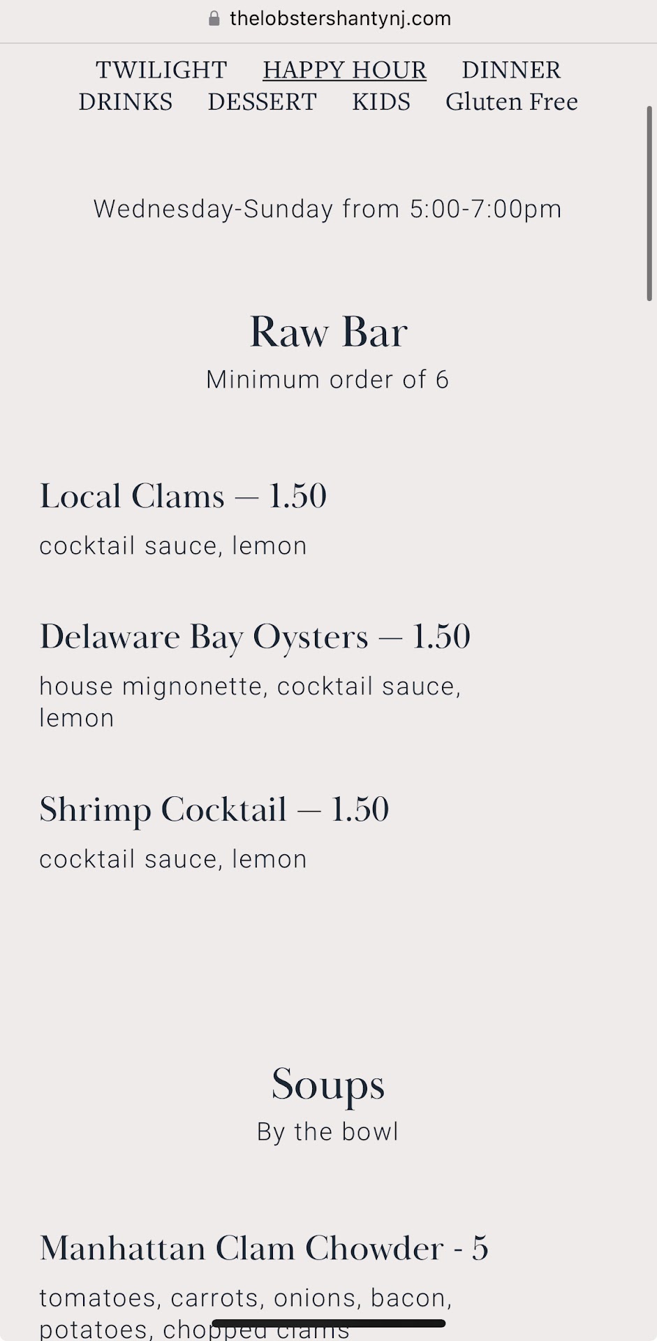 The oysters were decent. Only issue is their bait-and-switch tactic as far as advertising “happy hour”. They do not honor any happy hour deal promotion on their website. Was told “need to be at the bar” in order to pay happy hour prices. Crazy tactic from a subpar establishment. This tactic makes their pre fixe menu have absolutely no value when you realize the quality is subpar.