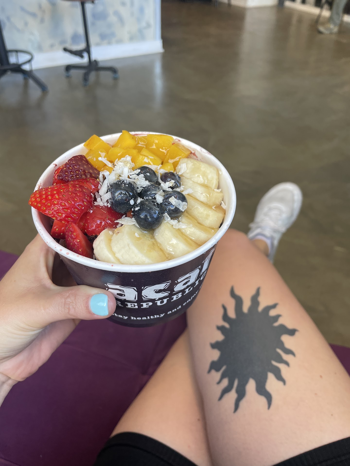 The açaà bowl was good - I could tell they used real açaà puree because it was mildly sweet and not loaded with artificial sweeteners. I topped mine with granola, mango, blueberries, strawberries, coconut, and cacao nibs.