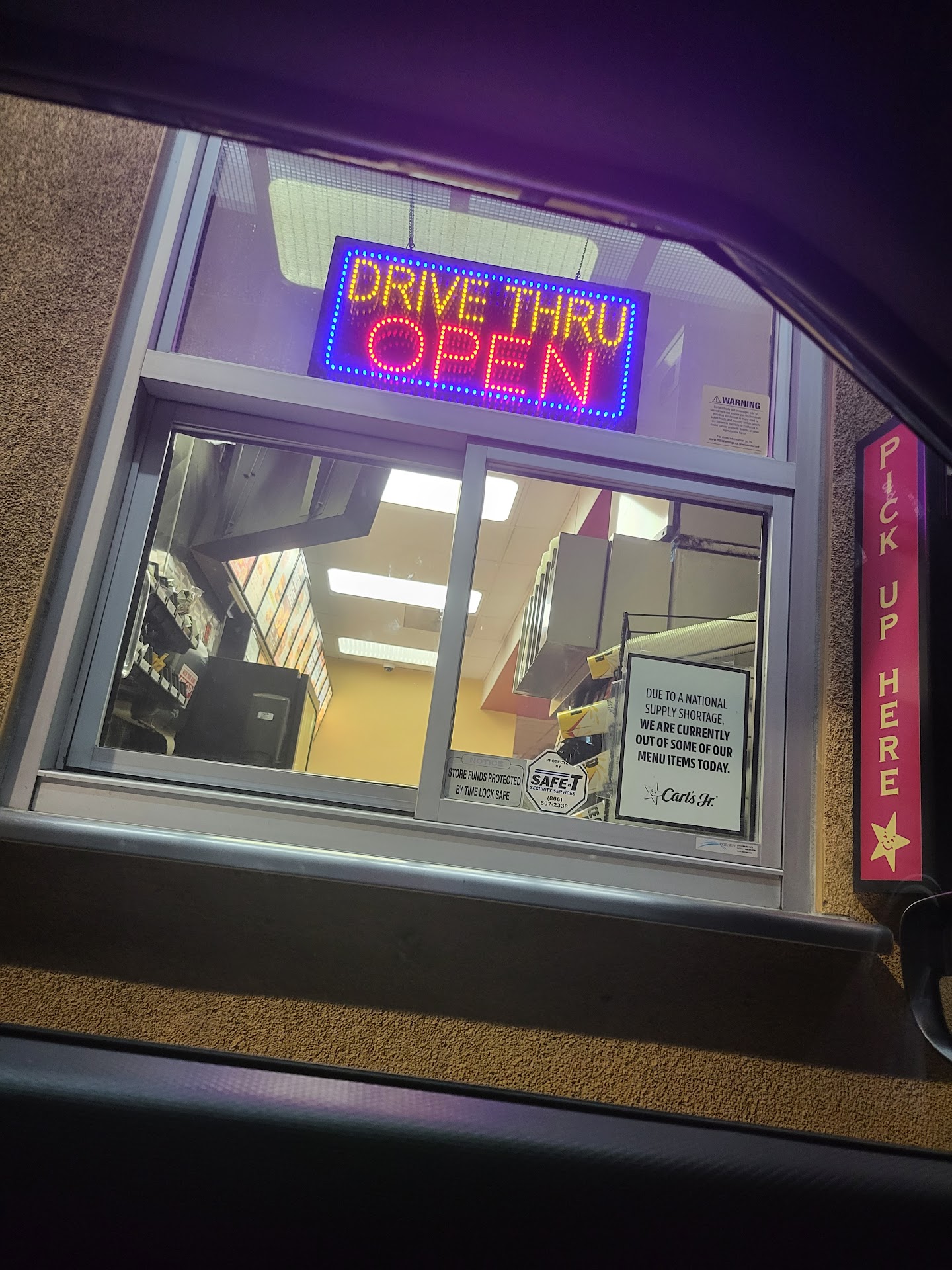 No one showed up, we were very disappointed. We were waiting for over 10 minutes at the Carls jr drive thru. We left to a near by SONICS instead. The people working at SONICS were very attentive and friendly....