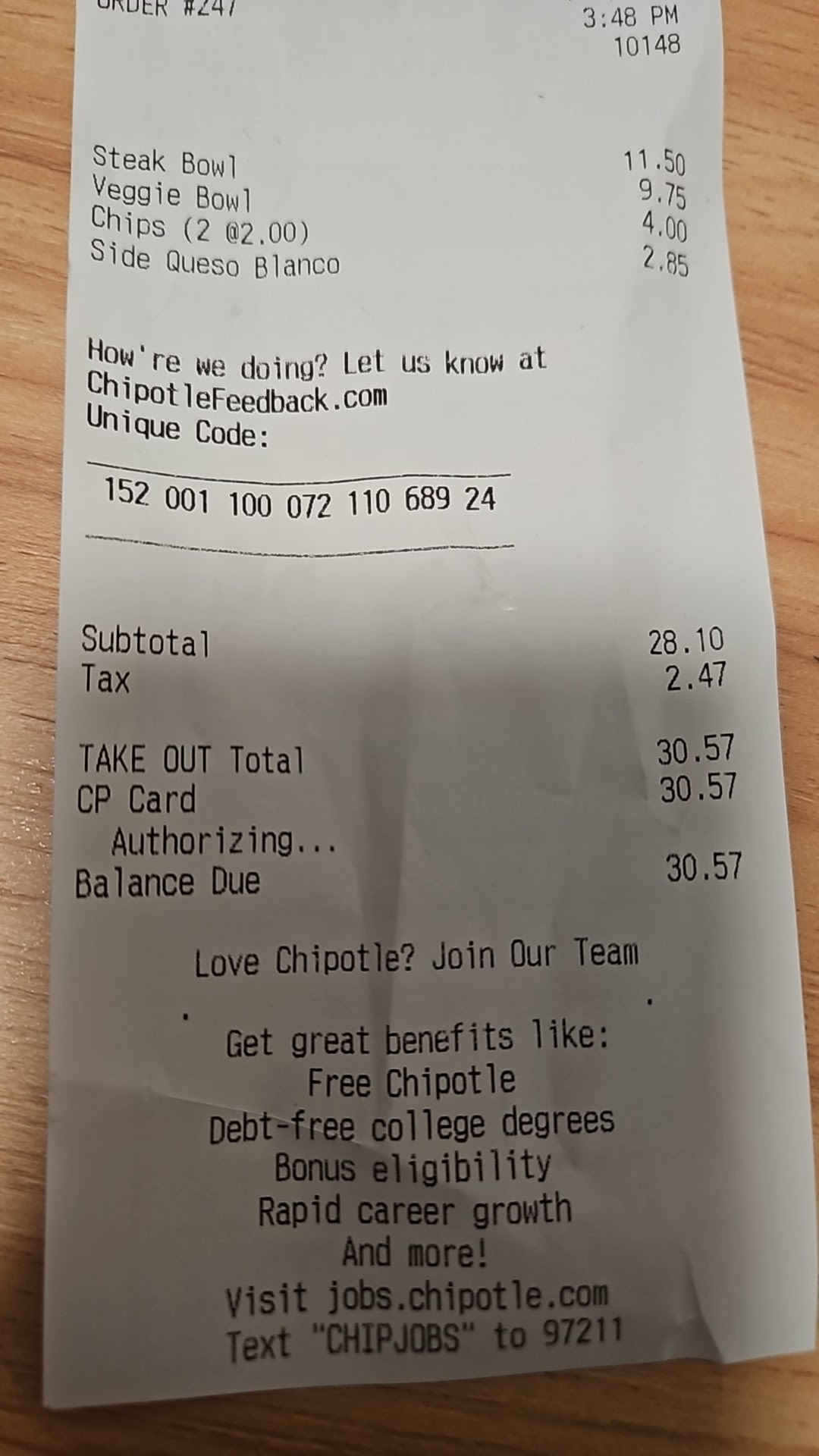 Read moreOrdered two drinks, a burrito bowl and a burrito through DoorDash. Whoever bagged my order at chipotle put the cold drinks on top of the burrito which made it cold by the time it got delivered. On my burrito bowl I ordered barbacoa as my meat, there was barely any meat in there. I also asked for guac, paid extra for it and didn’t receive any. I used to work at chipotle and whenever a DoorDash order came in and we didn’t have guac we would contact whoever ordered it and offer them something else since they paid extra for something we didn’t have. That did not happen with me so I’m not too sure if they were out or whoever made it just doesn’t know how to...