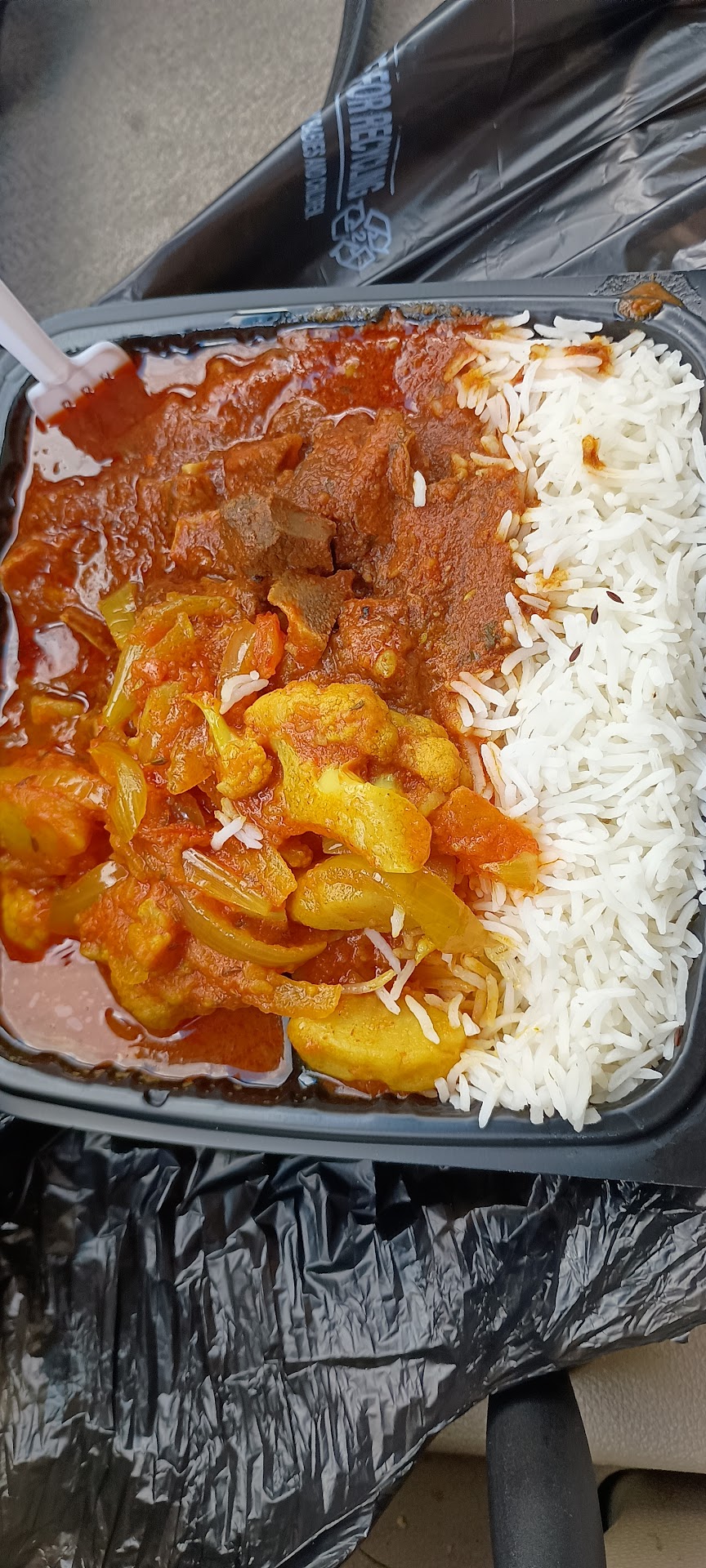 Read moreIt was very quiet and clean, which I highly value. The portion was large and the cashier was very polite. I liked it though the Tikka masala sauce had a heavy yogurt flavor and it was not as spicy (heat + seasoning) as I like; the chicken in it tasted grilled and added something unique. The black pepper chicken was way better in flavor, probably because of the vegetables in it. It's good. I would go back and try other options. They looked very appetizing. Also served with plenty of basmati rice and some naan. I paid about ~$17. . . . . . . . . I think I've been spoiled with this place called Mantra Indian Cuisine [in Riverside], though it had a different name before rebranding. Oh man. I dream about that place. The hot is the way to go if you are in the area. It satisfies the Indian food spot...