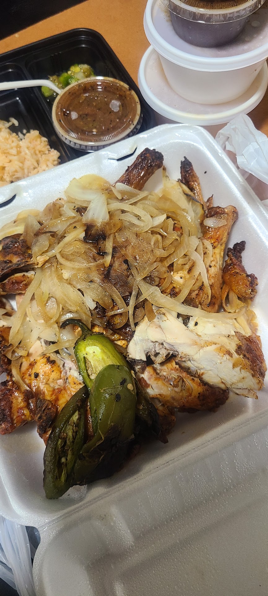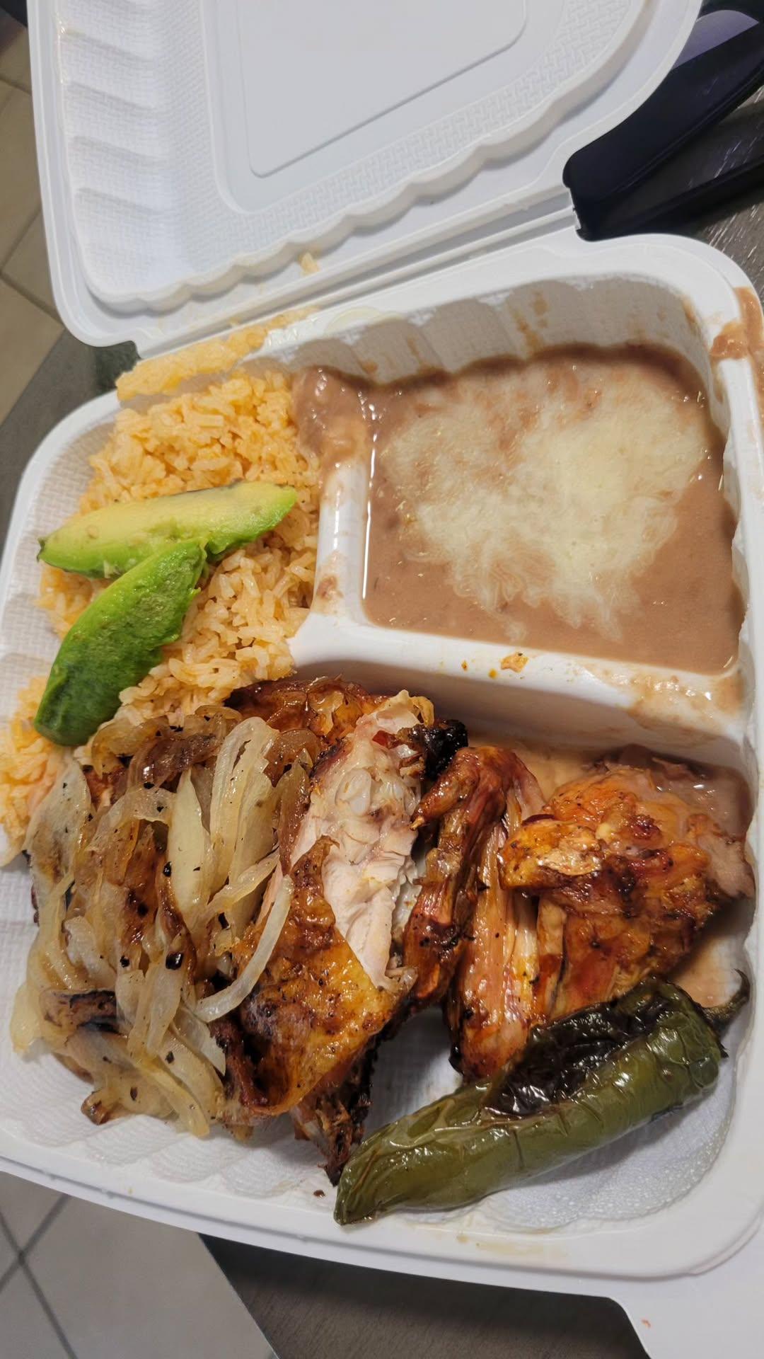 Chicken is so flavorful. Always a treat to eat here, as far as I’ve experienced they try to complete your order and the most I’ve waited is some minutes. Never timed myself. Interior was remodeled and finished beginning of 2021, looks great! Staff is super nice and even the chef in the back acknowledges you. No Mayer what you get, food is always on point. Chicken isn’t dry like Juan Pollo and rice, beans, salsa is all delicious! Not fake rice Juan pollo delivers. Doesn’t break the bank and really filling. Also worth the price when buying for parties. Call ahead of time and give them notice, outside looks outdated but best hole in the wall chicken spot. Have preached this place to everyone that I know. They might have their days that something is off (haven’t experienced yet) but they have a great staff and recipe. Oh! Also their hours are helpful since they only close one day and stay...