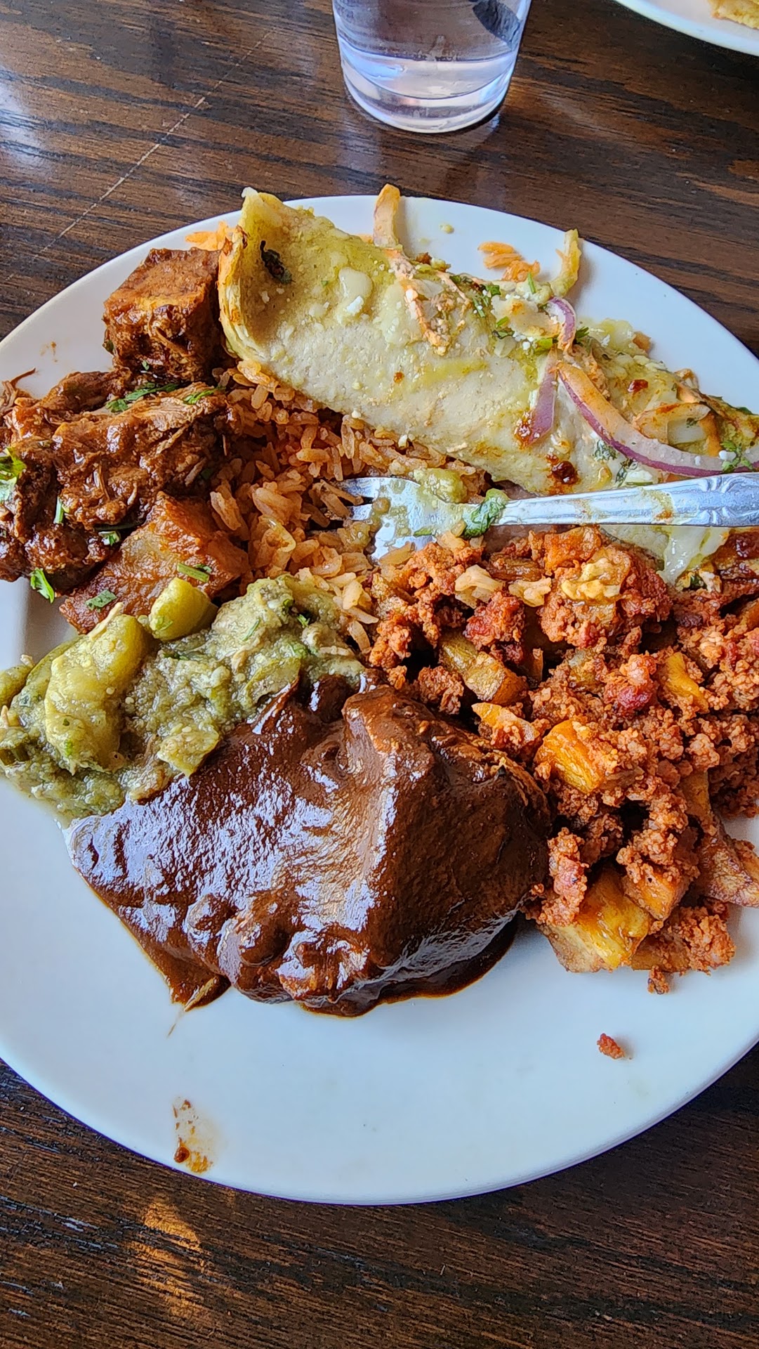 Read moreSad to say, this was one of my favorite, places to eat in pomona, went by with my family a couple days ago I ordered from the vegan menu, which I have before and my order was brought wrong and with cheese, which I really didn't mind because I'm vegetarian not vegan, but it would have been a huge issue for someone vegan, my tacos were still wrong they were all different when I ordered 3 of the same, the server who was amazing noticed right away and took it back to get remade, next we got our mole tots which were my favorite item there, and to my surprise a big chunk of chicken was in there, also our amazing server got them remade, but at this point I was skeptical about eating it but I was also hungry, my tacos came out and yet again I ate the first one which was what I ordered and was yummy, then I got to the next one and again it is wrong they literally made me the same thing again but without cheese, by this point I was really upset, but didn't show it, the server took it back and I just said I didn't want it anymore. I think the smaller restaurant was 100 times better because the owner was always there , so there was quality control. I might still go back, I hope this was just a new cooks situation and they get it...