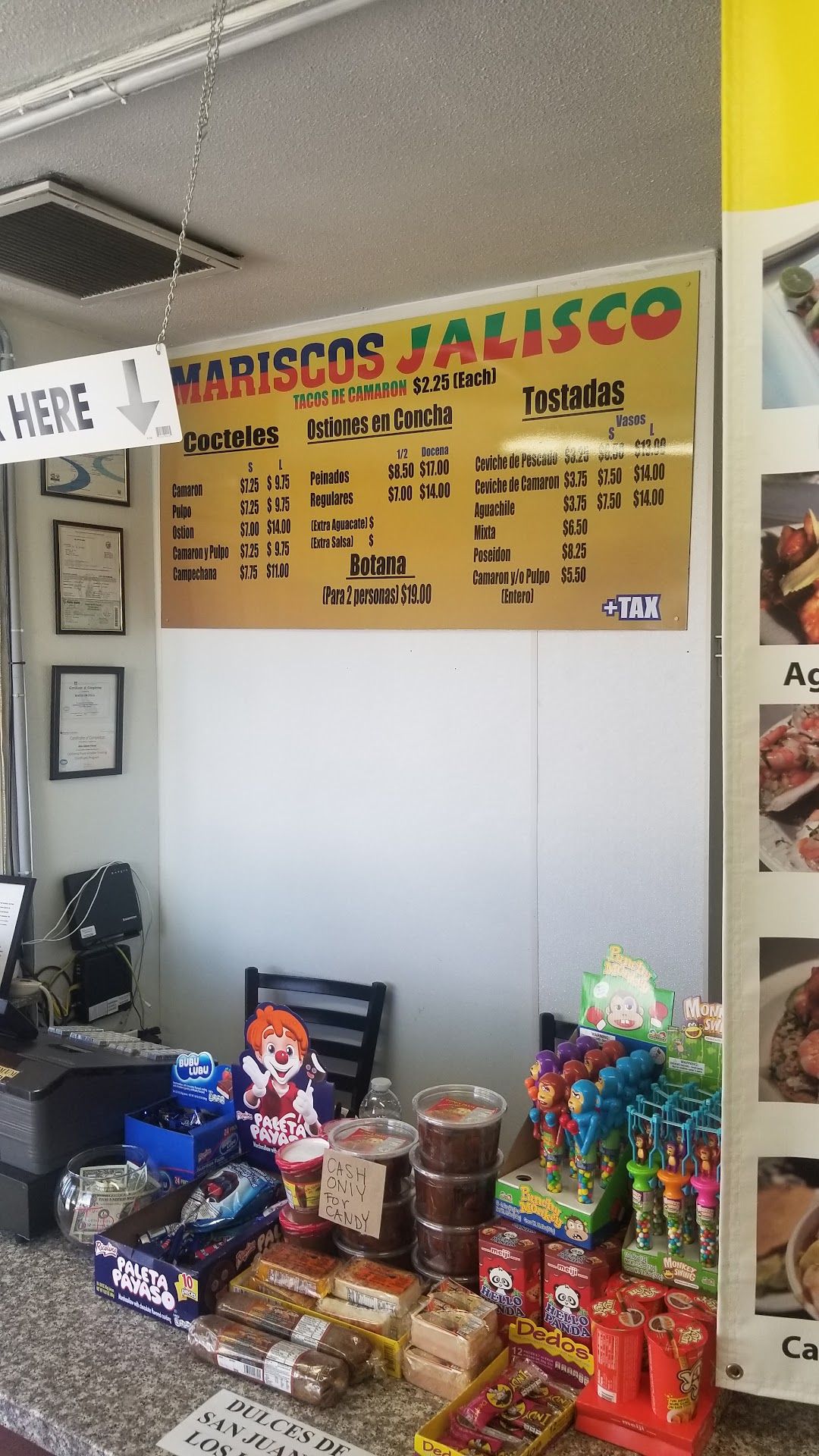 As a regular at 4 Vientos in East Los (the gold standard of mariscos in L.A.), I had to try this competition. I was very pleased with my journey out to Pomona just to eat at this place that is famous for their deep fried shrimp tacos and other seafood dishes. I came here by myself. It is a small stand with an order counter (you can buy any assortment of Mexican candies here) and kitchen at the entrance, and a dining area out back (air conditioned) with 7 tables for 4, and a single table for 2. There wasn't an empty table once I sat down. I ordered 2 shrimp tacos, and a small campechana cocktail (octopus, shrimp and abalone cocktail). I devoured it and wanted more. The small cocktail is perfectly sized. It arrived in a styrofoam cup, about 12 ounces. Not as packed as I'm used to, but delicious nonetheless. When you pick up your order after being called, there is a bin or crackers and a bag of tostadas you can grab to your heart's content. My shrimp tacos came out piping hot, with a bit of sliced avocado and salsa on top. The shell was crisp, the innards were packed with delicious filling, and the tableside salsas (I used Salsa Sinaloa, a habanero sauce) were bottled for your pleasure (a choice of tapatĆo, Sinaloa, and two house salsas). If I had one of these closer to San Gabriel Valley, I'd go all the time. I heartily recommend this spot for any and all Mexican seafood fanatics and any body looking for good food...