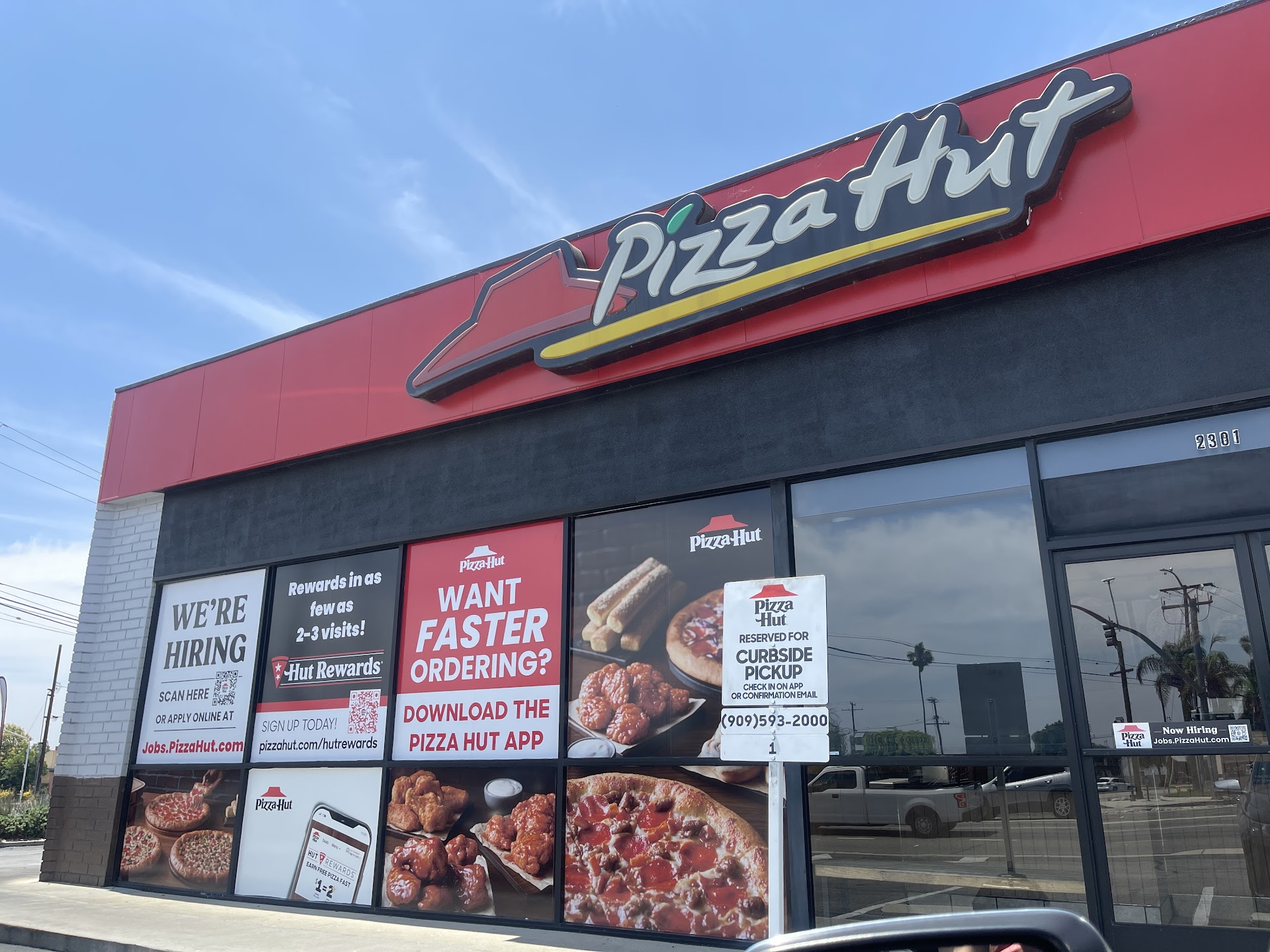 This pizza hut is very unprofessional.Here goes my horror story.Me and me wife were deciding between chinese food from mr.you(Bomb) in pomona or pizza,we decided to go with pizza unfortunately.So we got there and decided to place our order and the manager was in front taking orders his name was Devon.So we ordered 2 pizzas and hot wings because they have the new $5 deals,so we were going to pay $15 for all three.I wanted the hot wings bone in and he said they only have bone out,but on the poster that was on the window they had bone in.So i asked why were they not offering bone in and he said "BECAUSE THIS COMPANY SUCKS.I then said to him you dont like your job very much do you and he said "NOPE",and i said you should be happy to have a job because alot of people dont,and he said " YOU PROBABLY MAKE ALOT MORE MONEY THAN ME".This guy had the worse attitude ever and looked like he was angry at the world and depressed.So we waited about 30 mins for pizza and then the girl came out the back and asked us what order we were waiting for and i told her my name,and she pulled my pizza out of a oven that keeps the pizza warm,meaning it had been ready about 15 mins ago,and the manager devon never gave it to us,he was to busy talking and texting on his phone at the front register.So i opened the pizza and it was burned,stale,and looked like they just pulled it out of the microwave,then i opened the boneless hot wings and they had wing sauce drizzled on them,it looked like fried chicken with hot sauce.The girl then asked me if i wanted more sauce and i was like of course this is suppose to be smothered in wing sauce,and it was suppose to be an 8 piece and it looked like a 5 piece with 3 additional pieces of small fried batter.I sent it all back and asked for my money back.I then told the manager devon that i didnt appreciate the horrible customer service and bad food and i asked him did he think that he needed to apologize for the experience and he just shook his head NO,he didnt even speak.So i told him i would just call corporate.HORRIBLE...