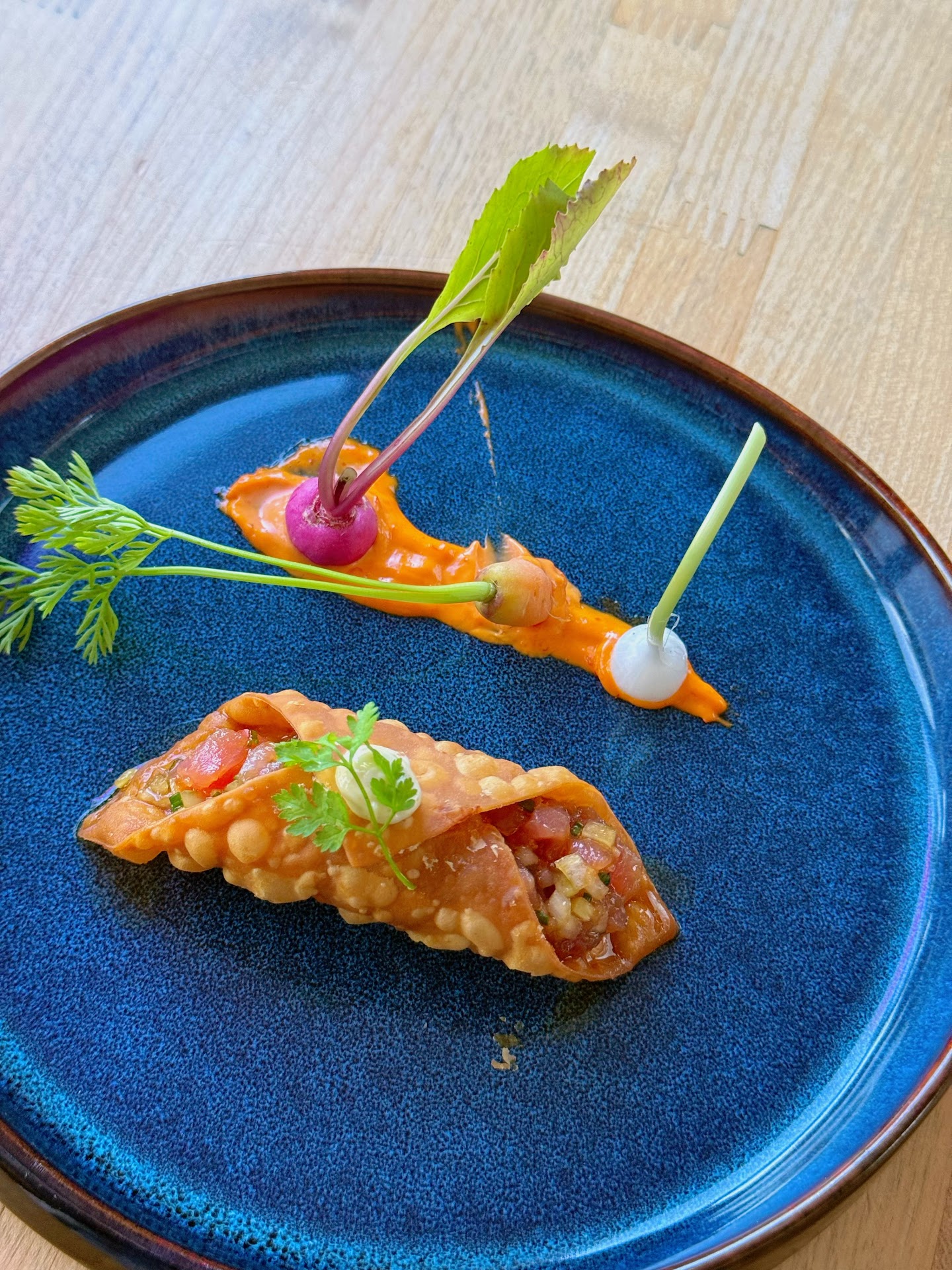 🐟 Tuna Poke Cannoli: A fun and fresh twist--crunchy shell filled with buttery poke, paired with a citrusy yuzu kosho aioli and colorful veggie crudités. A flavor bomb!