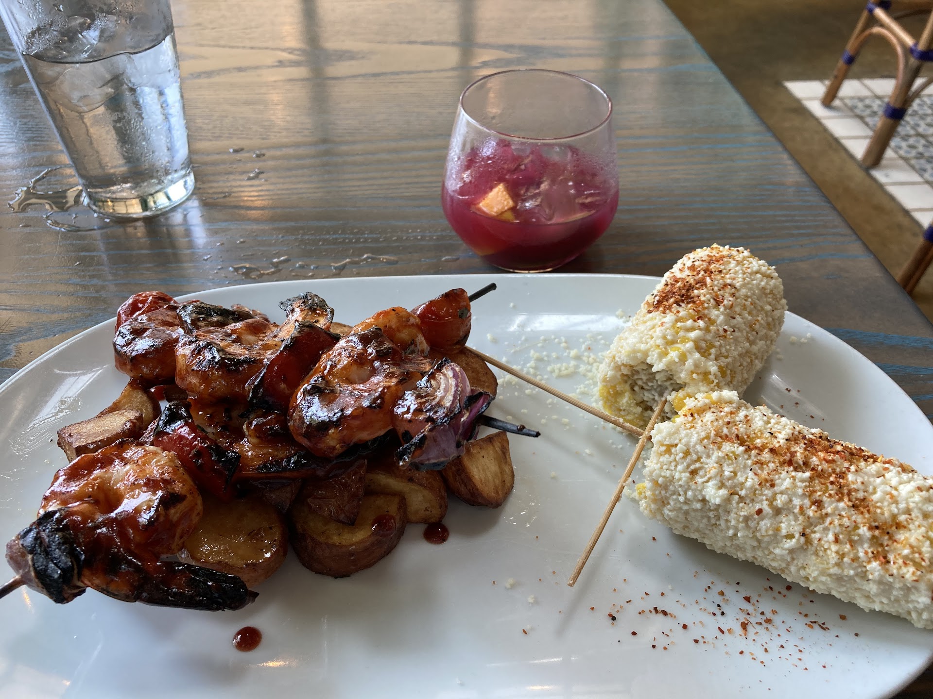 We ordered the shrimp flatbread and the crab meat guac & chips (the chips were served cold), and we devoured those apps in minutes! I ordered the True Cross salmon for my entree, which was a very generous piece of salmon I was surprised, it was delicious, and my friend ordered the watermelon salad with blackened shrimp, also one of Ed's recommendations.