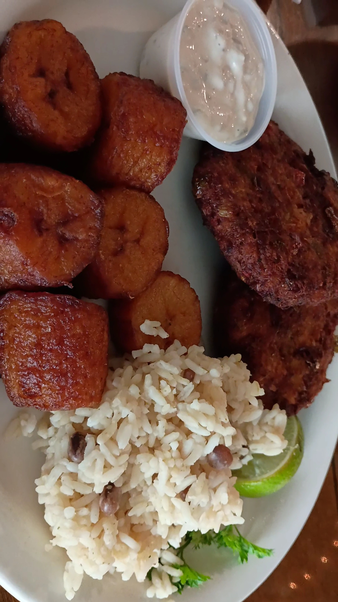 Next came the entree - Stamp & Go which was two saltfish patties served with my choice of two sides (rice & peas and fried plantain). The fried plantains was fried nicely and was sweet, just how I Iike 'em. The rice and peas was cooked to a soft consistency and was full of flavor just like it was made in the islands. Rachel was nice enough to give me some curry sauce on the side since I stated I don't like eating dry rice, and it made the rice taste so much better. The saltfish patties was crunchy on the outside and flavorful on the inside mixed with curry,, onions, and red/green peppers. When Rachel came and asked if things were to my liking, I replied that the food exceeded my expectations. I literally felt like I've been transported to the islands...the only thing that was missing was some island music to solidify the vibe.